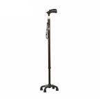 1. The load bearing can reach 125kg, strong and stable; 2. The upper branch is treated with aluminum alloy and black, and the lower branch is designed with nylon fiber; 3. 9 levels of height adjustment to meet the needs of people of different heights; 4. Four-legged foot pad, travel steadily; 5. The cane is made of aluminum alloy, with a net weight of 0.465kg, which is light and easy to carry, and can be easily lifted by the elderly; 6. Non-slip handle, fit the human hand design, comfortable to hold for a long time without getting tired; 7. The cane can be folded and stored, which is easy to carry.