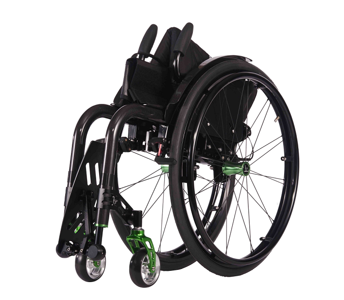 F1 ultra-light folding wheelchair is customized by experts for users. It is super light, easy to push, comfortable to sit, and can be easily stored in car trunks or airplane luggage racks taking minimum space. The frame folds in 1 action, while the wheels feature quick-release axle. When folded and remove the wheels, the frame can pass through airport security scanners. F1 has adjustable seating positions and versatile accessories. Its carbon fiber components help reduce weight and improve performance. The compact yet stable folding mechanism reduces frame size while maintaining stability comparable to fixed-wheel wheelchairs.