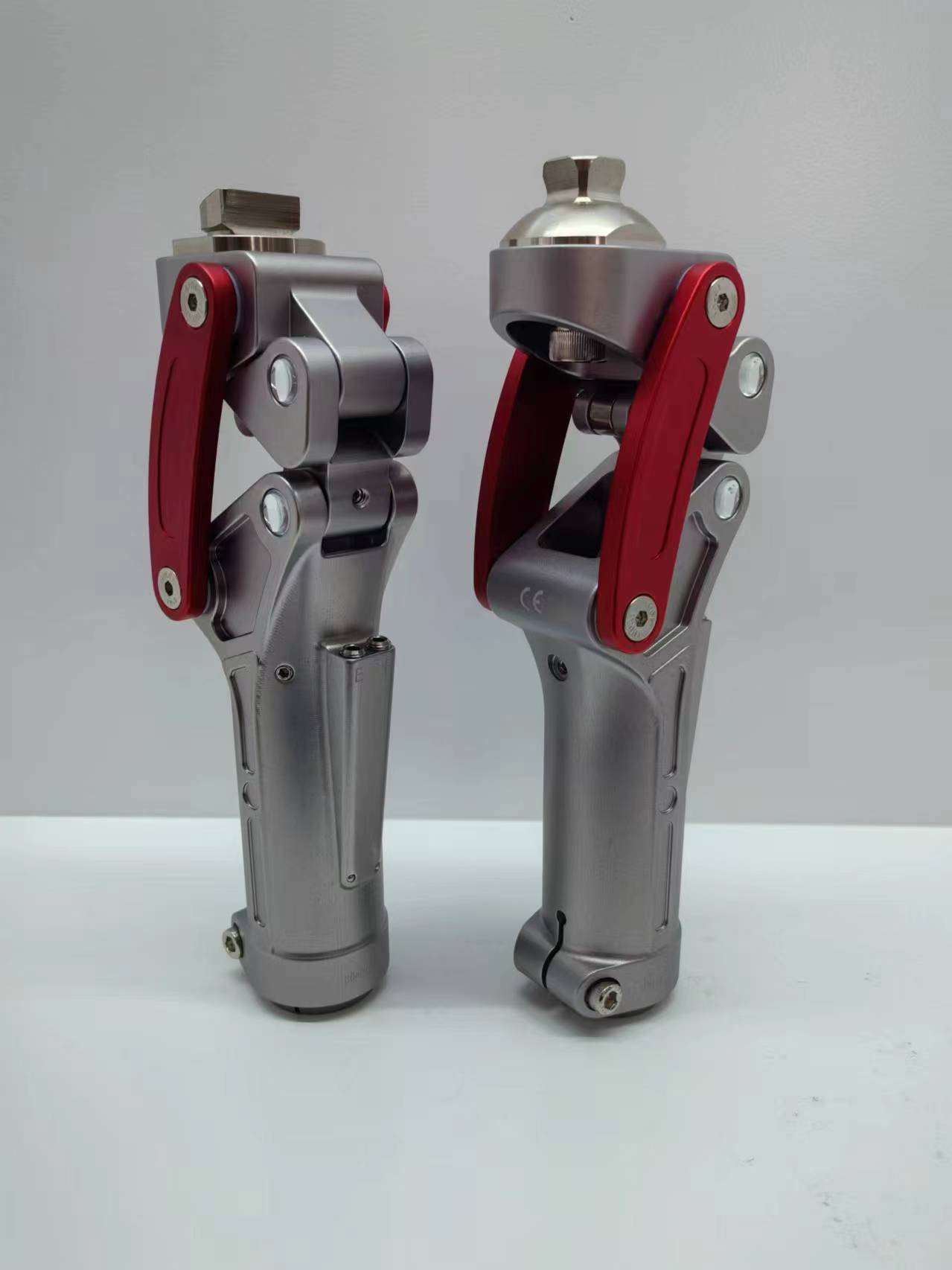 Four Bar Linkage and double pneumatic cylinder's structure, flexion swing is independently controlled, and the maximum flexion damping is 6.5Nm. The knee joint is designed with a long connecting rod, which has stronger geometric stability during the stance phase