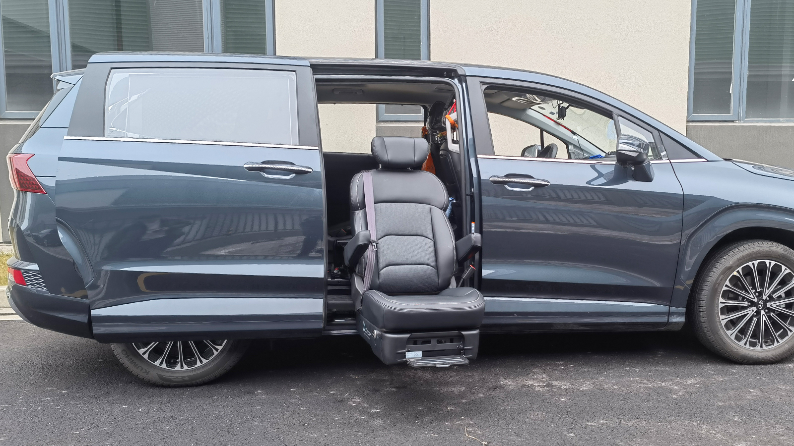 SLIFT Pro V2 swivel seat is a kind of welfare seat which can fitted onto SUV, MPV etc and help the older or the disabled to get seated safely, conveniently and comfortably.It can be matched and reformed in combination with original car seats even aviation seats. It is operated by wired remote control or your mobile phone. This seat is programmable by the wired remote control including programming the movement of lengthwise, rotation and seat backrest angle. Program function: The rotation path, forward and backward movement, seat back angle and seat lowering height can be programmed and set by the remote control. After the program is set, it can run automatically; the actions of each path can run synchronously; Door interlock function: When the door is closed, the seat can only move back and forth and retract, and cannot be turned out; the door icon is displayed on remote control; Sleep function: When the door is closed for 10s, the seat will enter sleep mode automatically with a low quiescent current. it can be woken up by the remote control Manual emergency function: In the case of electrical damage or power failure, the seat can be retracted manually for emergency Control by cellphone:The seat can be connected to cellphone by Bluetooth and controlled by APP. CAN function customization is available; Pass GB15083 impact test; Equipped with GAC Trumpchi M8 aviation seat, pass the impact test, belt pulling force test, CCC test;