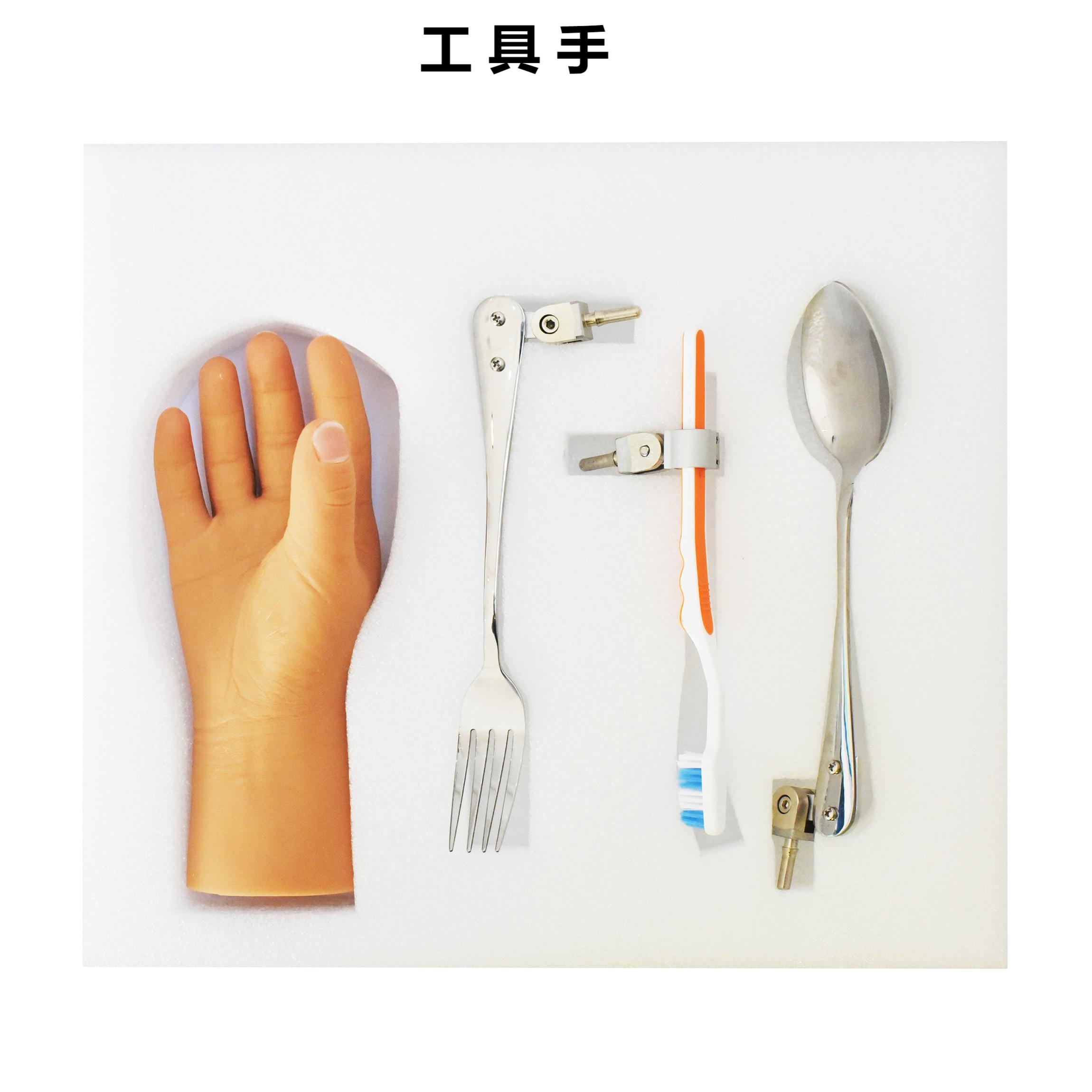 The tool hand adopts a quick-change connector plug-in design, with buttons for unlocking and locking. In addition to the conventional beauty tools, it is also equipped with 1. spoon, 2. fork, 3. hammer, 4. pen, 5. toothbrush, 6. fruit knife, and 7. touchscreen finger, which are convenient for patients to overcome some difficulties in daily life and work. It is a practical and cost-effective product with high quality.