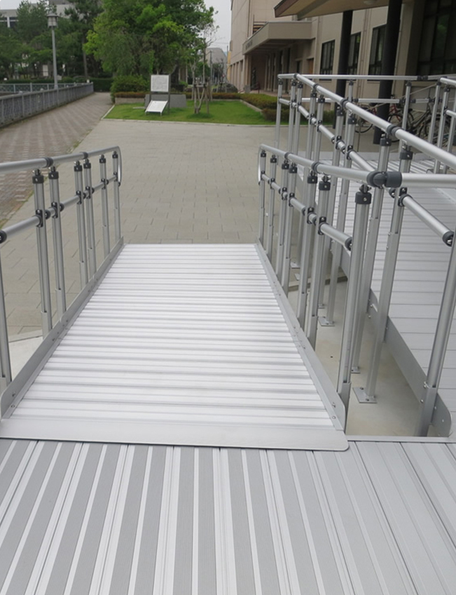 1.These aluminum modular wheeichair ramp systems can easily be lakendown,moved or ra-configured and all modular ramps and handrails featurestandard lengths with interchangeable components. 2.These system can be used for permanant or semt*permanent installion andcan be easlly reassembled at another location,expanded on or re-soid whenthey are no longer needed. 3.These modular wheelchair ramps have less hardware,are lowmaintenance,more durable than wood and have a ciean and modernappearance. 4.Assembly time of 30 minutes