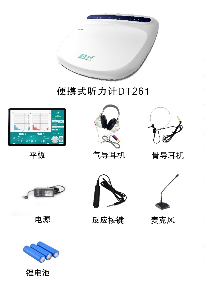 DT261是一款便攜式診斷型聽力計(jì),支持氣導(dǎo)、骨導(dǎo)測(cè)試功能。設(shè)備采用平板藍(lán)牙無線控制,輕便易于攜帶,雙電源超長(zhǎng)續(xù)航,熱敏打印便捷,支持?jǐn)?shù)據(jù)互聯(lián)互通,保障數(shù)據(jù)安全,是移動(dòng)高端聽力計(jì)完美解決方案。方便醫(yī)院接診和醫(yī)生外出義診使用。