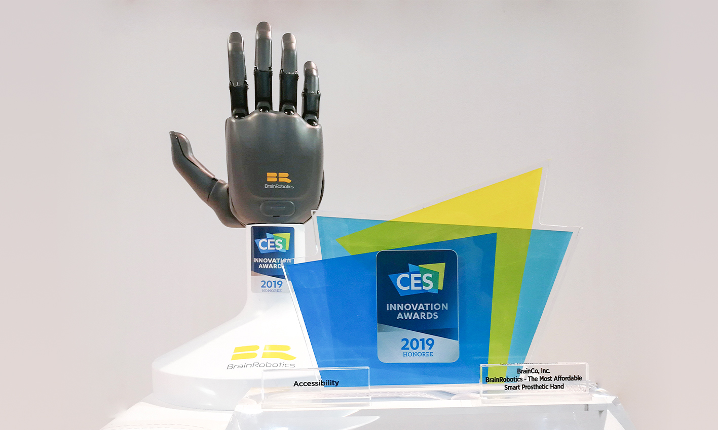 BrainRobotics智能仿生手,是一款腦機(jī)接口技術(shù)與人工智能算法高度整合的智能產(chǎn)品。這款仿生手可通過(guò)檢測(cè)佩戴者的神經(jīng)電和肌肉電信號(hào),識(shí)別佩戴者的運(yùn)動(dòng)意圖,并將運(yùn)動(dòng)意圖轉(zhuǎn)化為智能仿生手的動(dòng)作,從而做到靈巧智能,手隨心動(dòng)。