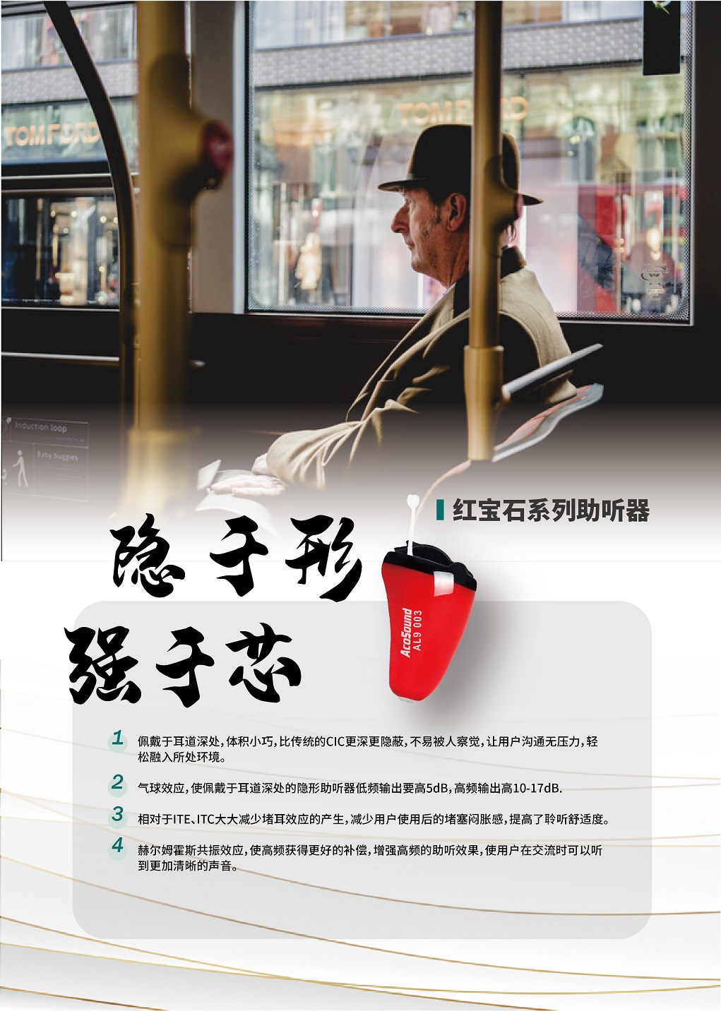 佩戴于耳道深處,體積小巧,比傳統(tǒng)的CIC更深更隱蔽,不易被人察覺,讓用戶溝通無壓力,輕松融入所處環(huán)境。 氣球效應,使佩戴于耳道深處的隱形助聽器低頻輸出要高5dB,高頻輸出要高10-17dB。 相對于ITE、ITC大大減少堵耳效應的產(chǎn)生,減少用戶使用后的堵塞悶脹感,提高了聆聽舒適度。 外殼采用不透明納米陶瓷材料,更堅固更具韌性,不易損壞。
