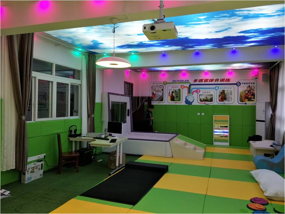 多感官綜合教室可用于多動癥、自閉癥、動作協(xié)調(diào)性的鍛煉,學習障礙、注意力缺陷、唐氏綜合癥的康復訓練及感統(tǒng)康復評估。引入了由華東師范大學曾凡林教授開發(fā)的多感觀客觀評價系統(tǒng),不但增加了兒童的訓練的趣味性,同時也有了對訓練效果的評估。