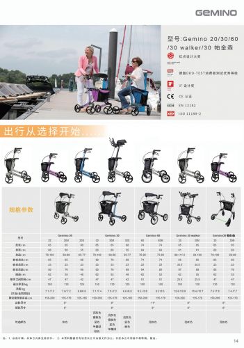 Gemino 助步車設(shè)計(jì)獨(dú)特、功能全面、操作靈活、時(shí)尚靚麗、是老年人出行的貼身伴侶。