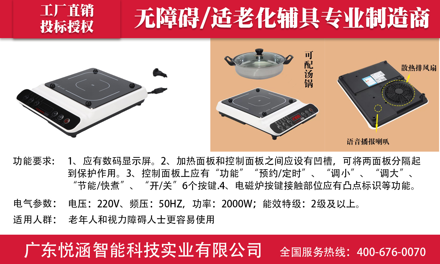 產(chǎn)品應(yīng)由電磁爐、湯鍋、帶電磁環(huán)電源線組成;電磁爐加熱面板材質(zhì):耐高溫黑晶防滑面板,耐高溫、沖擊、不易變形、耐用,正面采用防水設(shè)計(jì),清潔方便;最高功率不小于2000W,使用時(shí)可以按+、-鍵自由調(diào)整,十檔火力任意調(diào)節(jié);面板上有四個(gè)定位柱,可防止鍋滑動(dòng)。