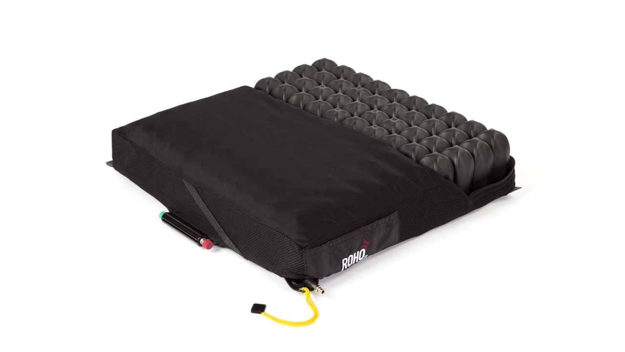 ROHO應用干式浮力技術(shù),使您沉入,合您身形,隨您而動,與您協(xié)作。有效保護皮膚及軟組織,提升用戶坐姿穩(wěn)定。 ROHO四邊可調(diào)型坐墊配有ISOFLO專利記憶控制閥 當閥門打開,即綠色推入時,所有氣囊相互連通,此時可以漸進調(diào)整坐姿,或充氣或放氣 當坐姿調(diào)整完畢,關(guān)閉閥門,即將紅色推入時,坐墊分為四個獨立分區(qū),分區(qū)內(nèi)氣囊聯(lián)通,而四個分區(qū)之間互相獨立,以提升用戶在坐姿狀態(tài)下的穩(wěn)定性