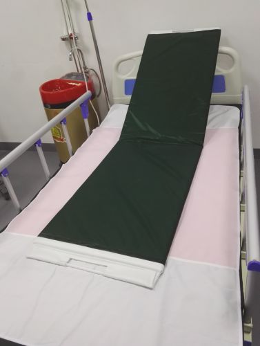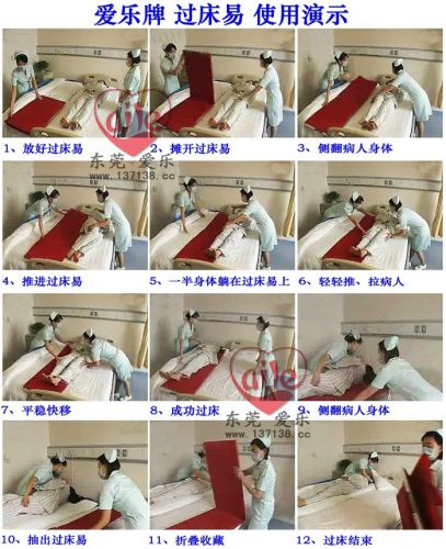 通過過床板與過床板外套之間的摩擦滑動(dòng)而使過床板外套循環(huán)滾動(dòng),從而使躺在過床器的的病人輕松轉(zhuǎn)移到另外一張床上(或手術(shù)臺(tái)、推車、病床、CT臺(tái)換床)。目前國(guó)內(nèi)基本每家醫(yī)療、康復(fù)等機(jī)構(gòu)都有使用,尺寸為:長(zhǎng)1700x500x15mm,能對(duì)折,攜帶操作方便,不足之處床與其它設(shè)備之間落差不宜大于10cm。
