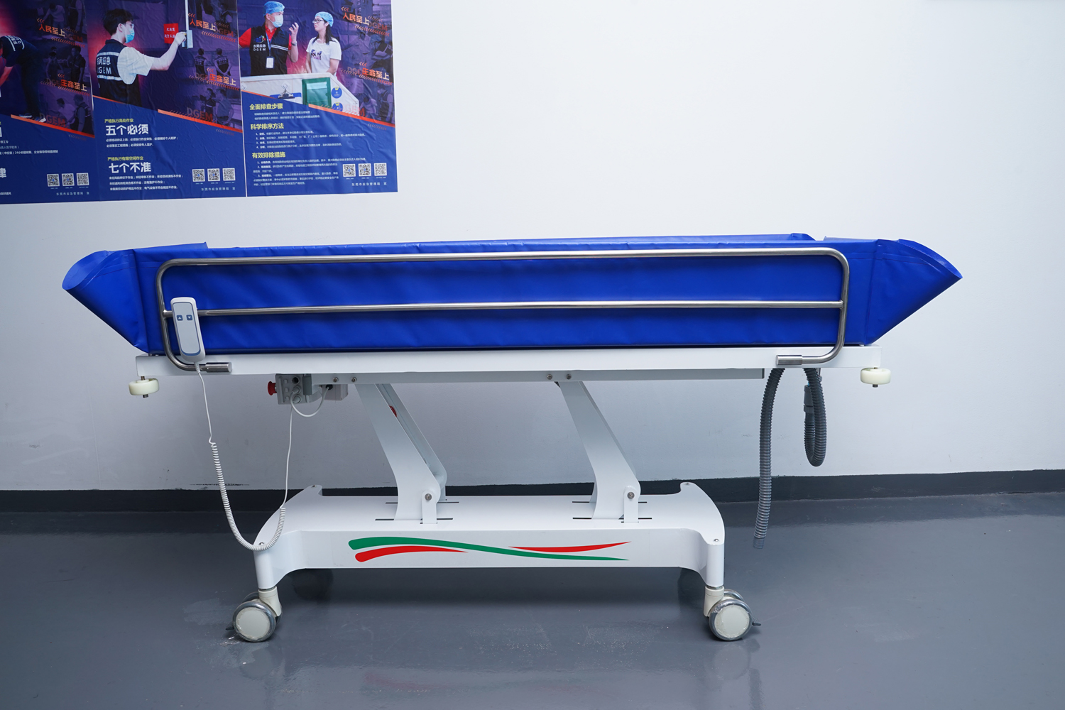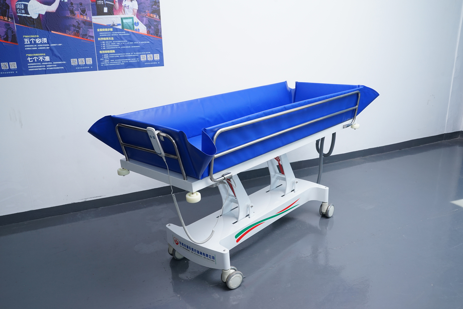 1 功能 采用進(jìn)口24V/800KG推力特種防水電機(jī),平穩(wěn)整體升降。電源為24V/4.4AH高效節(jié)能環(huán)保電池。護(hù)工操作簡(jiǎn)單,調(diào)節(jié)到浴者舒適體位。 2 床體 床 架:高級(jí)304#不銹鋼、冷板、冷管; 連接件、緊固件、旋轉(zhuǎn)件:304不銹鋼材質(zhì); 表處理:整體表面戶外防水烤漆處理;(冬天觸摸床體不冰涼) 防 護(hù):床體四角均安裝3寸防撞輪。 3 規(guī)格參數(shù) 浴 槽:采用高韌性環(huán)保皮劃艇料