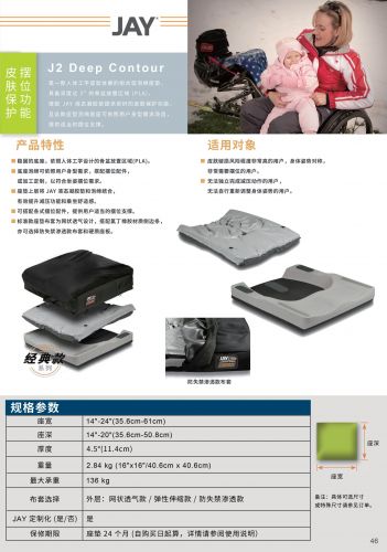 J2 Deep Contour 是一款座墊上層由液態(tài)凝膠墊和泡棉組合的減壓座墊,適合皮膚破損程度非常高的用戶,身體姿勢對稱以及非常需要擺位功能的用戶。