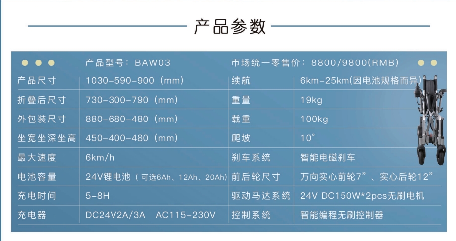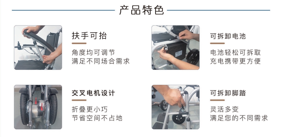 1、鋁合金車(chē)身,凈重17公斤 2、快拆式腳踏,方便上下車(chē)、移位 3、收合簡(jiǎn)單,免彎腰,可放后備箱 4、專(zhuān)利防后傾輪,二段式設(shè)計(jì),有效防止傾倒、后翻,安全加倍