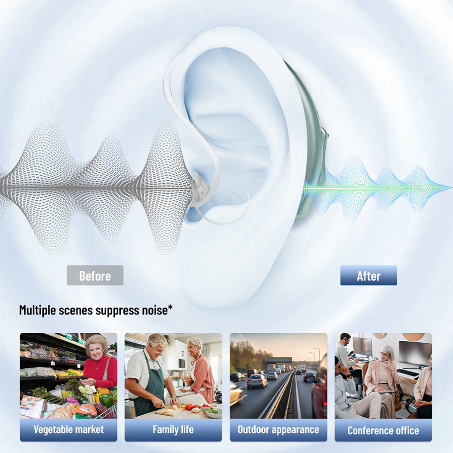 這款助聽器是數(shù)字16通道、EQ32通道RIC風(fēng)格,適用于中度聽力損失人群。
