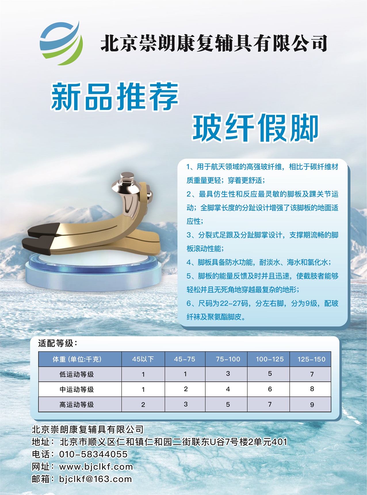 采用高強(qiáng)度玻纖成型,適配等級(jí)分為1-9級(jí),跟高:10-15mm,分左右腳,腳板分趾,配腳皮及玻纖襪。