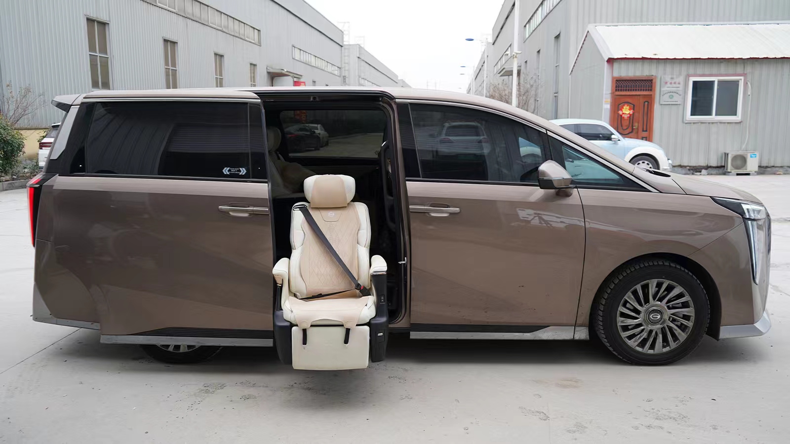 福祉座椅適合腿腳不便的老年人、殘疾人或是行動不便的人群。座椅可以旋轉(zhuǎn)出車外,并且根擾乘客的需要進行座椅距離地面的上下調(diào)節(jié)高度,使乘客更加方便和舒適地上下車。
