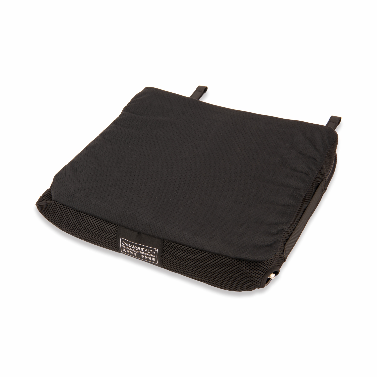充氣坐墊采用環(huán)保PVC氣囊,內(nèi)置獨立氣囊,氣囊相互連通,易充氣和調(diào)節(jié),依據(jù)空氣流通卸壓原理,能有效預防壓瘡。左、右獨立氣室的雙氣嘴設置,不同的截癱患者左右臀部肌肉收縮程度的高低不同,可通過左、右氣嘴調(diào)節(jié)左、右獨立氣室內(nèi)的空氣量,使截癱患者得到最佳的舒適度及減壓平衡效果。坐墊套面層采用透氣滌綸面料,底部PVC防滑革,拉鏈設置易于清洗。多種尺寸、高度,適合不同輪椅使用者的需求。