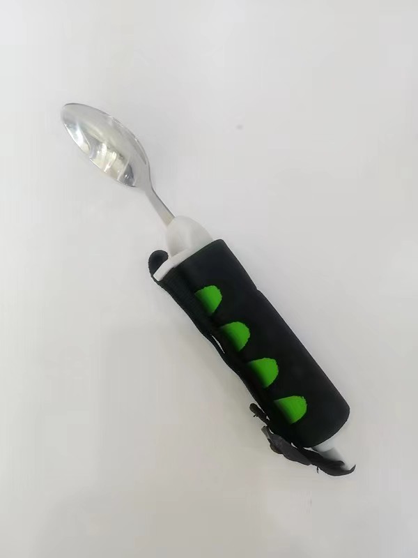 該產(chǎn)品握柄材質(zhì)為防滑材料NBR制成,勺部為不銹鋼。產(chǎn)品間隔設(shè)計可增加手部與握柄間的摩擦,易于抓握。方便指捏、握力減弱的偏癱患者自行進(jìn)餐。勺柄尾部留有穿戴孔,扣帶采用尼龍材料,柔軟舒適,依靠鋸齒形設(shè)計調(diào)整扣帶長度,有效避免因長時間配戴產(chǎn)生的不適感。3.5*8*23.5cm。適用于握力喪失及握力不足人群。
