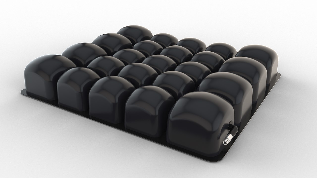 ROHO馬賽克坐墊較小的氣道尺寸,使得座墊負(fù)載后形變較小,減緩氣囊之間的氣流速度,產(chǎn)生更平穩(wěn)的就座感受。 坐墊使用PVC材質(zhì)氣囊,重量輕,可降低座椅系統(tǒng)整體重量,使得推行更輕松; 氣囊可調(diào)節(jié),使支撐面壓力分布均勻,避免局部壓力過(guò)大造成的皮膚和軟組織損傷。