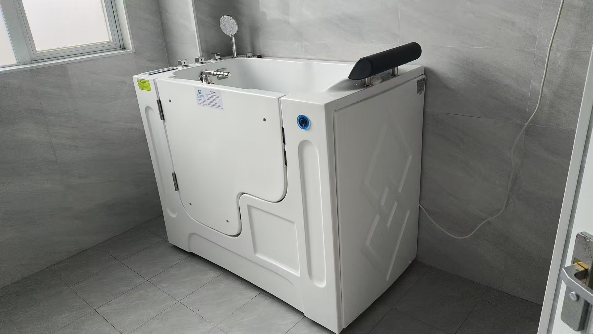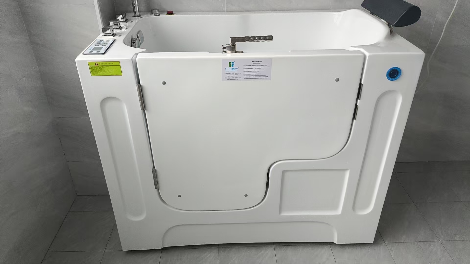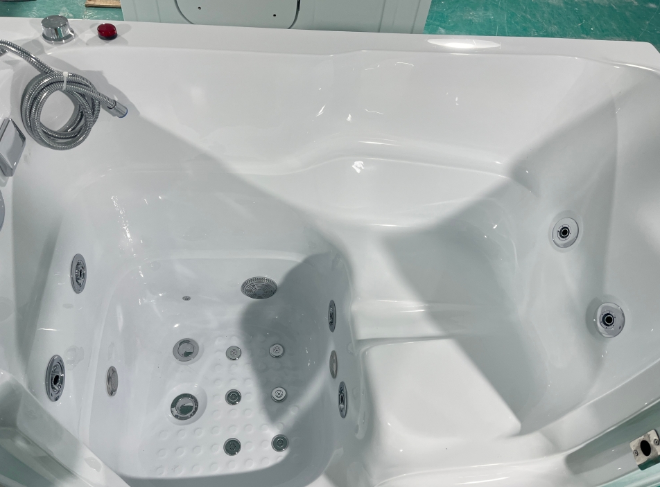 RH-902老人無障礙康復(fù)浴槽,1300×750×1150 mm可開門設(shè)計,304不銹鋼門鎖、低門檻進出。亞克力缸體無甲醛、無刺激,460 L水量,6渦流+60孔氣泡三檔按摩,32點LED光療隨溫變色警示。LCD觸控恒溫處方30組一鍵調(diào)用,藍牙音樂、臭氧消毒<0.01 mg/m³。水電分離雙漏保,220 V/1.1 kW,CE認證,已入國家康復(fù)輔具目錄,適用于養(yǎng)老院、社區(qū)及家庭,給失能、半失能長者
