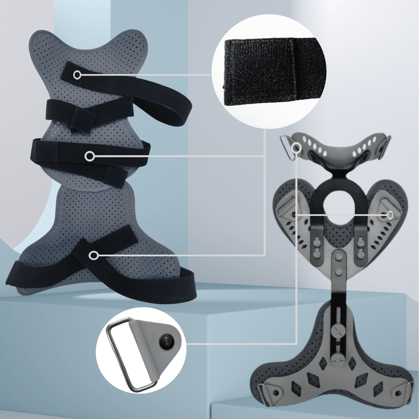 適應(yīng)癥狀: 用于頸椎術(shù)后融合及穩(wěn)定頸椎骨折的處理。 特點: 1、鉤環(huán)帶便于尺寸調(diào)整。 2、高強度鋁合金支撐框架,輕巧耐用。 3、人體工程學(xué)設(shè)計確保舒適舒適。 4、穿孔的外部面板和微穿孔的內(nèi)部雙重通風(fēng)。