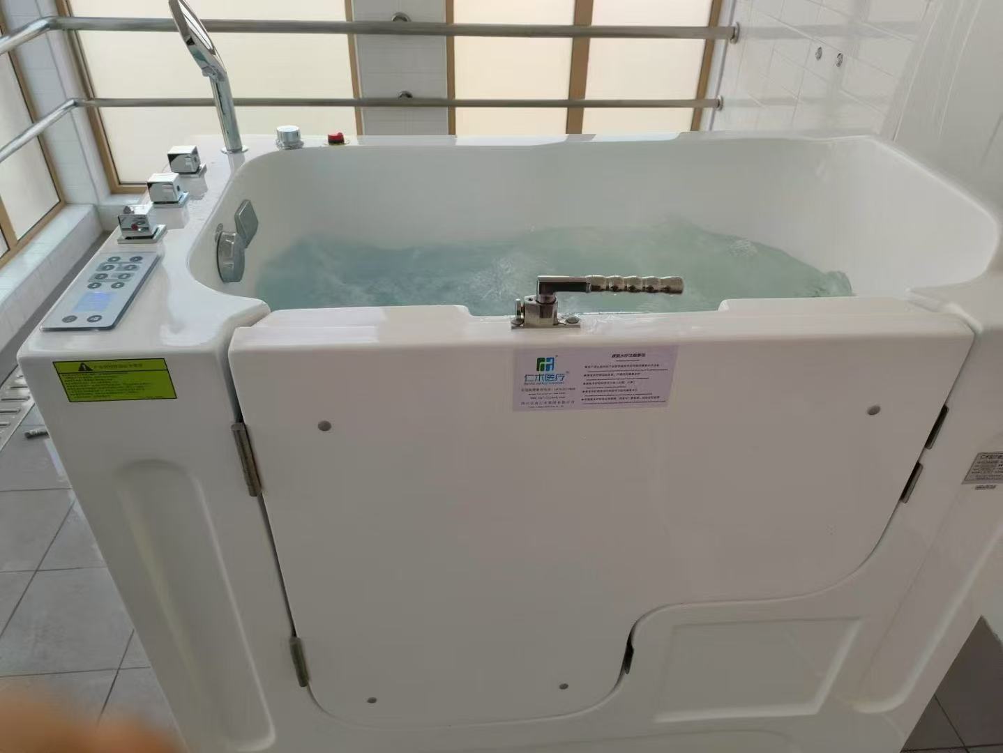RH-905坐式藥浴浴槽,亞克力+鋁合金,1300×750×1150mm,零刺激零甲醛。460L恒溫藥浴,可加藥包/香薰,冷熱混水,6渦流5氣泡,溫度變色LED,藍牙音樂,臭氧<0.01mg/m³,手動+腳踏雙排水。外開門+低入口+304門鎖,進出安全,適合老年、術后及康養(yǎng)機構(gòu)。