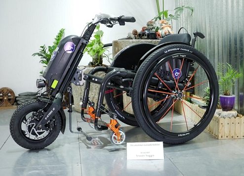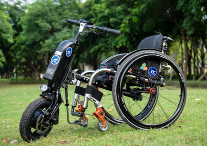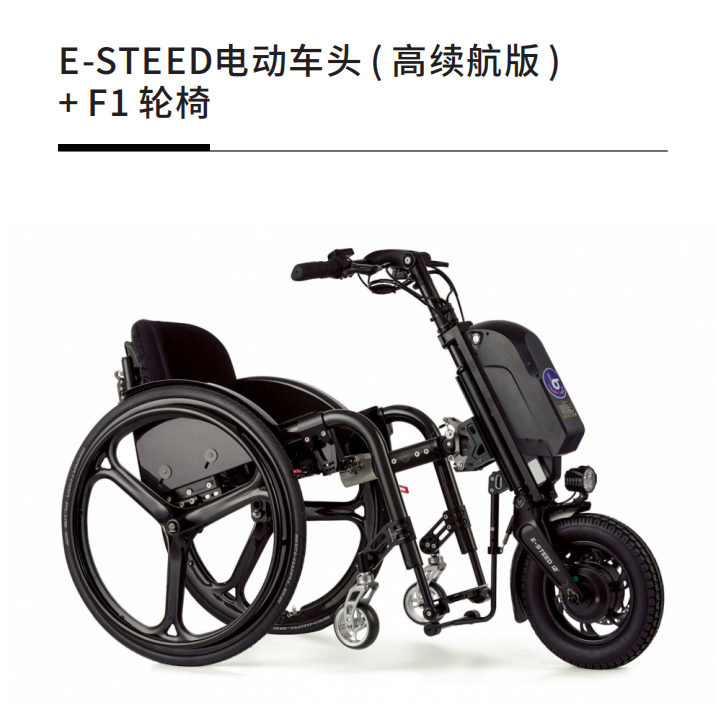 E-steed電動handbike,可以和手動輪椅配套構(gòu)成一種新式的電動輪椅,既有手動輪椅的靈活性,又具備了接近電動自行車的行駛速度和通過能力,很好的提升使用體驗和出行效率。 E-steed最快速度25KM/H, 最大續(xù)航里程60公里,具備倒擋,集成前照明燈和警示喇叭。 BRAXEN BAGGIO首創(chuàng)的中置式鏈接提供穩(wěn)定可靠的使用感受,可以無損拆裝,對輪椅車架沒有負面影響。