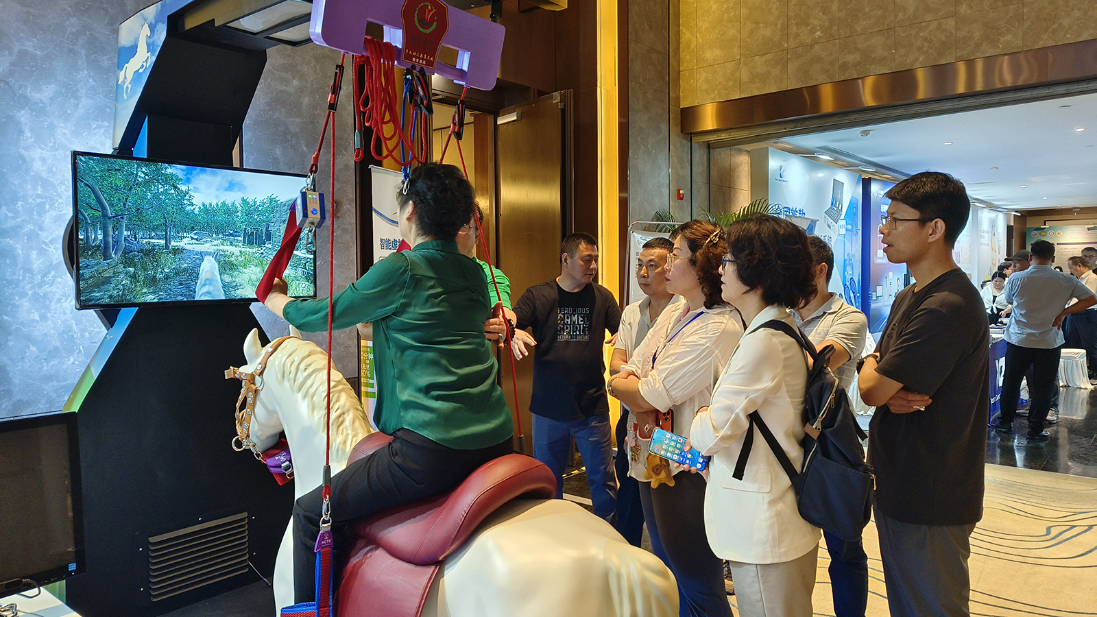 兒童用懸吊馬術(shù)動態(tài)康復(fù)訓(xùn)練系統(tǒng)簡稱“馬術(shù)動態(tài)康復(fù)訓(xùn)練系統(tǒng)”,該系統(tǒng)在懸吊技術(shù)基礎(chǔ)上增加馬術(shù)動態(tài)訓(xùn)練系統(tǒng),系統(tǒng)通過模擬不同狀態(tài)下馬匹不同動作的律動及頻率,并結(jié)合虛擬的情景互動訓(xùn)練系統(tǒng),模仿馬匹行走、奔跑、跳躍、前仰、后翻等動作變化,模擬森林、河流、海邊的自然環(huán)境變化,實現(xiàn)快樂狀態(tài)下的沉浸式運動康復(fù)訓(xùn)練,針對生理、心理、認知、社會化及行為上有問題的病患進行康復(fù)訓(xùn)練,以達到放松肌張力、提高協(xié)調(diào)性加速功能