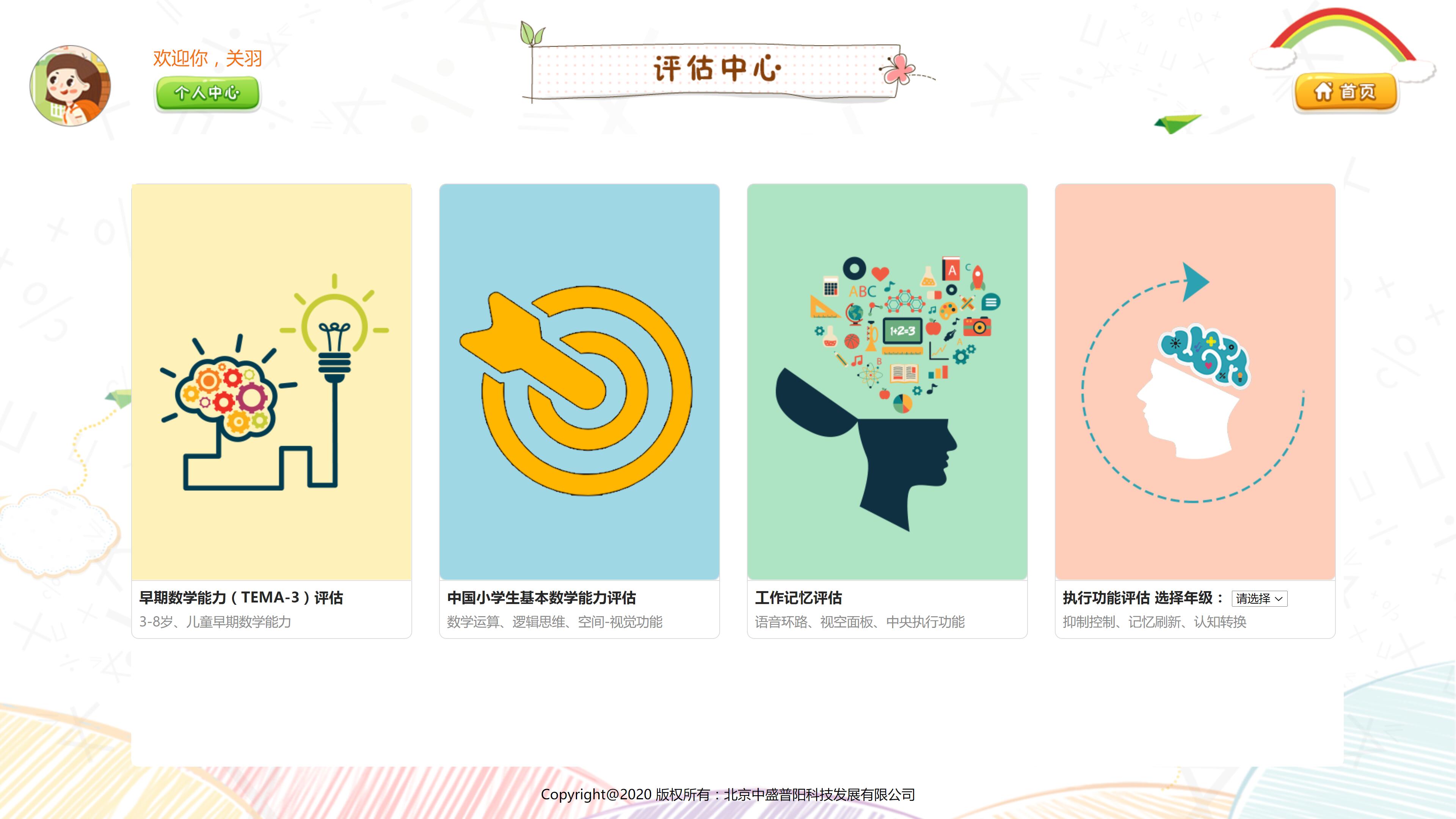 基礎(chǔ)數(shù)學(xué)能力評估訓(xùn)練儀針對兒童基礎(chǔ)數(shù)學(xué)能力的評估與訓(xùn)練,覆蓋3-12歲幼兒及兒童應(yīng)掌握的數(shù)學(xué)學(xué)習(xí)內(nèi)容及課程大綱要求。 軟件的評估部分提供早期數(shù)學(xué)能力(TEMA-3)測試、中國小學(xué)生數(shù)學(xué)能力評估測試、工作記憶評估測試、執(zhí)行功能評估測試和元認(rèn)知評估測試等專業(yè)評估工具。軟件既可用于測試兒童的一般數(shù)學(xué)能力,也可作為鑒別兒童數(shù)學(xué)能力優(yōu)弱點(diǎn)的診斷工具使用。