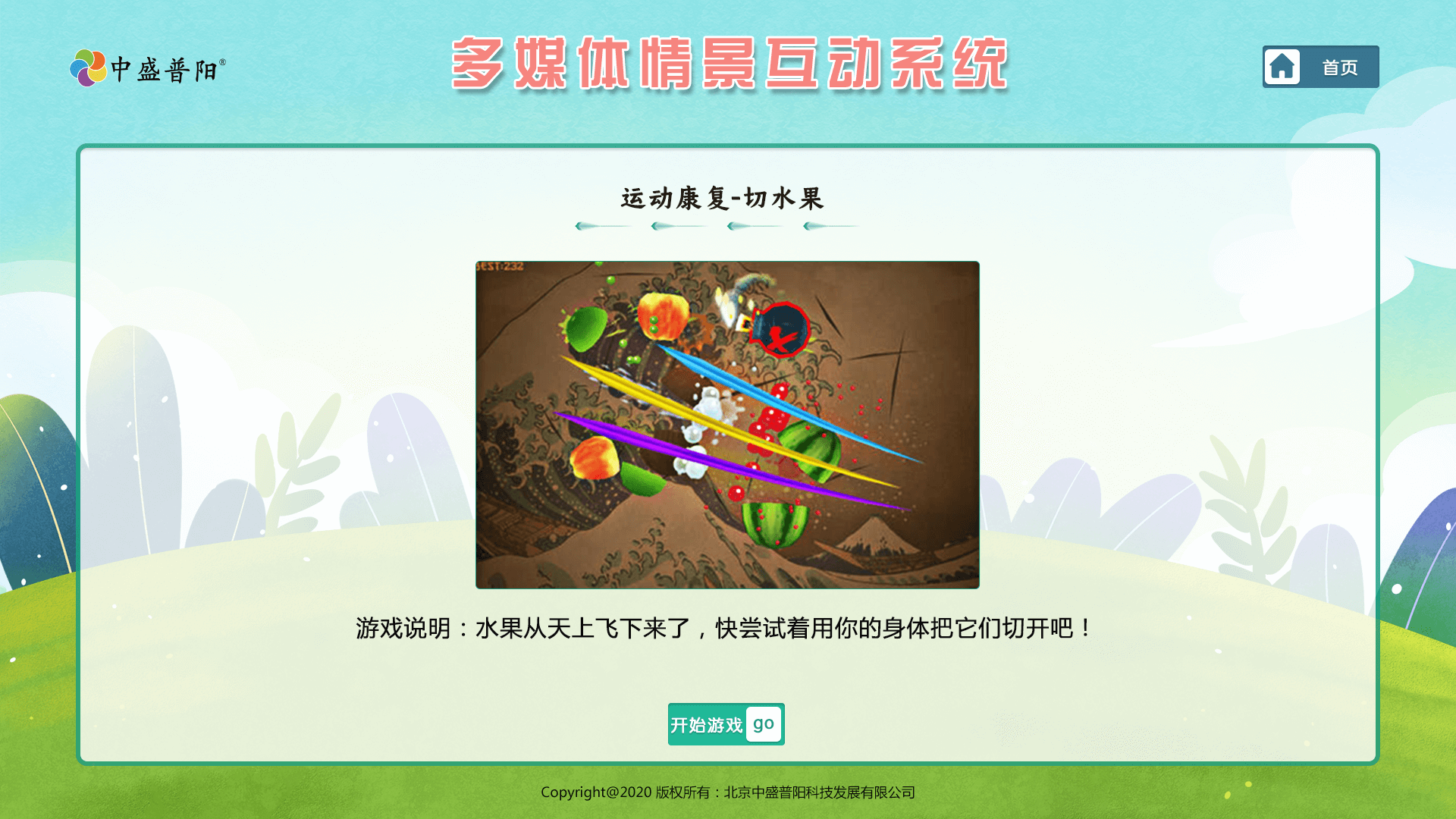 多媒體情景互動(dòng)系統(tǒng)通過(guò)互動(dòng)游戲的形式引導(dǎo)學(xué)生進(jìn)行訓(xùn)練,激發(fā)學(xué)生的興趣。系統(tǒng)采用了先進(jìn)的動(dòng)作捕捉技術(shù),系統(tǒng)可不借助任何輔助設(shè)備直接在地面成像,通過(guò)人體的肢體動(dòng)作實(shí)現(xiàn)實(shí)時(shí)動(dòng)作捕捉,進(jìn)行情景互動(dòng)訓(xùn)練。 系統(tǒng)包括了運(yùn)動(dòng)康復(fù)、認(rèn)知益智、情景體驗(yàn)、趣味互動(dòng)等八大類型,超過(guò)一百三十多個(gè)原創(chuàng)設(shè)計(jì)訓(xùn)練游戲,如:城市煙花訓(xùn)練游戲,當(dāng)兒童在投影區(qū)行走時(shí),系統(tǒng)捕捉兒童腳部動(dòng)作,地面會(huì)出現(xiàn)絢麗的煙花。