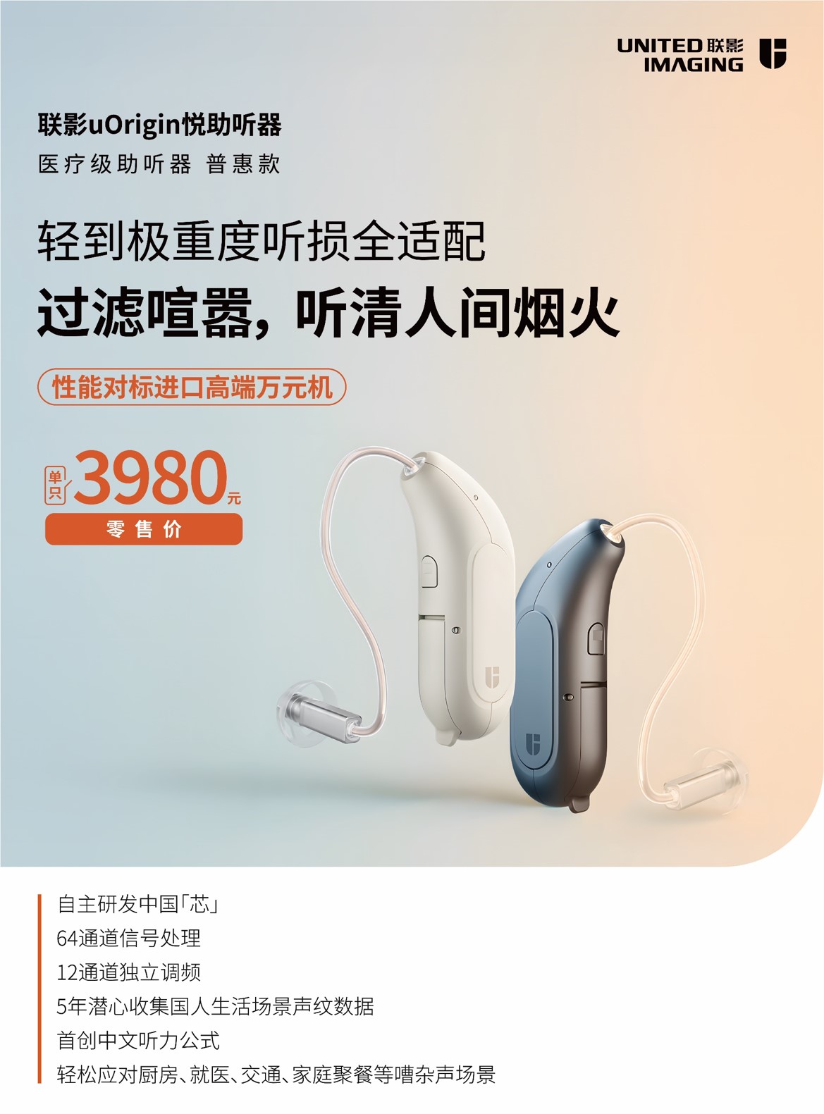 聯(lián)影“悅”助聽器,12通道可調(diào),專為所有聽力需求設(shè)計,搭載極限降噪科技,即使身處喧鬧街道或擁擠地鐵,也能讓您輕松駕馭環(huán)境,對話清晰自在。強(qiáng)勁續(xù)航與快速充電技術(shù),保障您全天候持久暢聽,不斷電。更以卓越音質(zhì),帶來清晰、舒適、自然的聽覺體驗,為您開啟全天無憂的聆聽新境界。