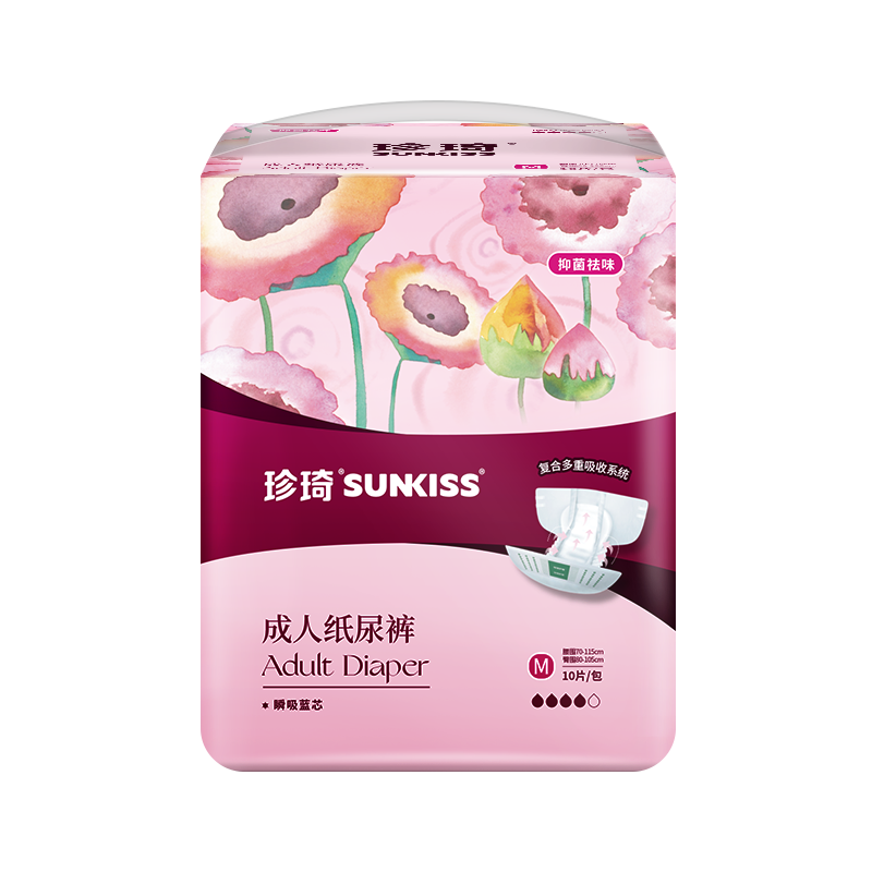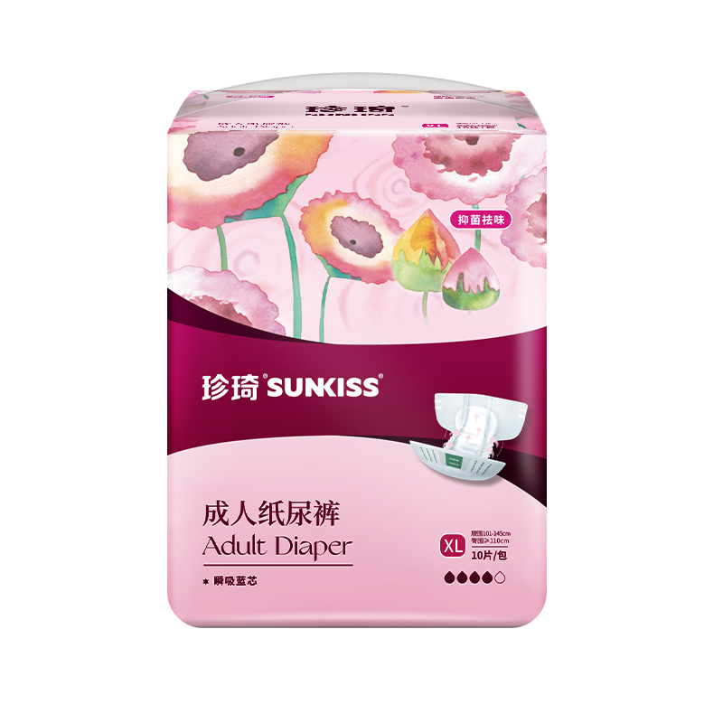 珍琦花樣倍護紙尿褲 ① 復合多重吸收系統(tǒng): 采用了“瞬吸藍芯”技術,使液體快速擴散低回滲,保持皮膚干爽舒適; ② 高效吸收芯體:進口優(yōu)質(zhì)絨毛漿搭配高鎖水性SAP,雙芯速吸,更高吸收量,更強鎖水性,干爽舒適低回滲 ③ 貼身腿部橡筋:不勒肉,無來縛,加倍防側漏保護,減少打擾病者的頻次和護理人員換洗的工作量 ④防漏PE底膜:采用全新料PE膜,防潮不悶熱,柔軟不透水,有效防止液體滲漏. 適用于臥床失禁老人