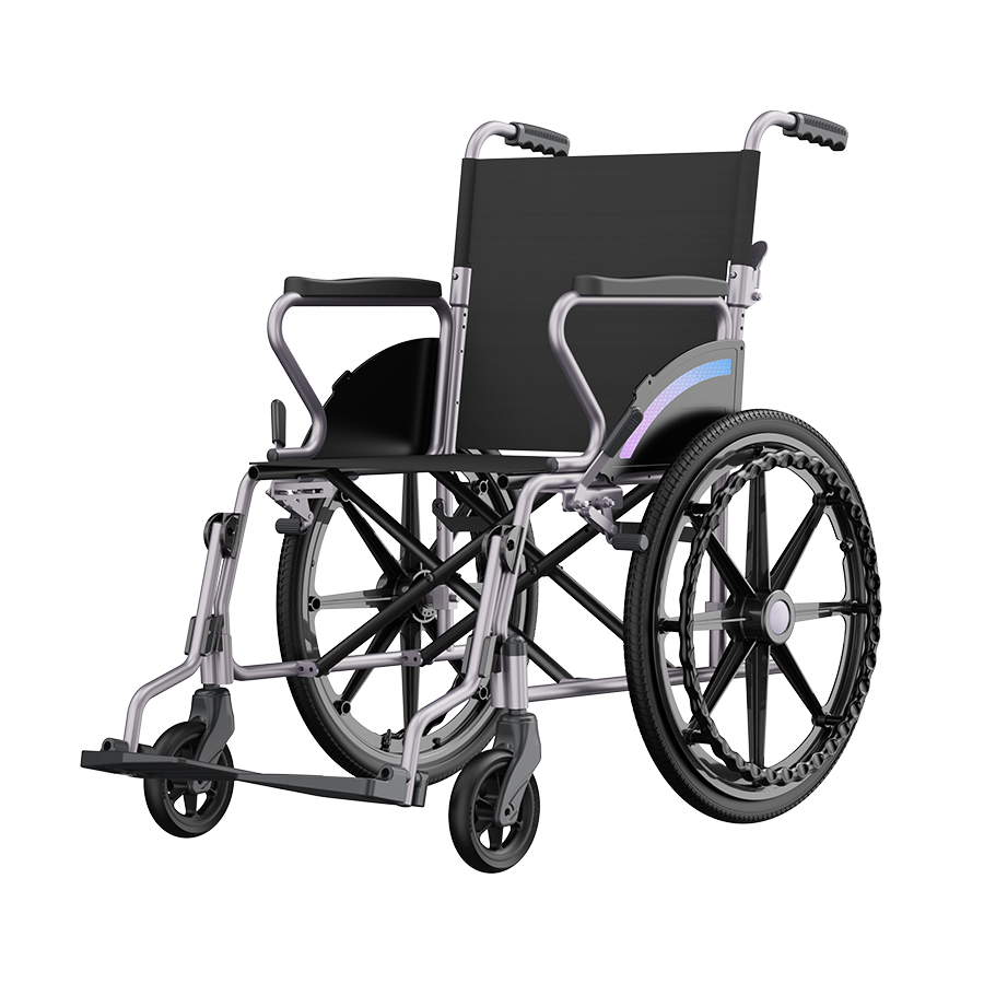 互邦大紫羅蘭手動輪椅,時尚外觀,20寸大輪手推圈,輕松行駛不費力,可輕松折疊,放入轎車后備箱,整車11.6公斤,方便攜帶,折疊收納后小巧