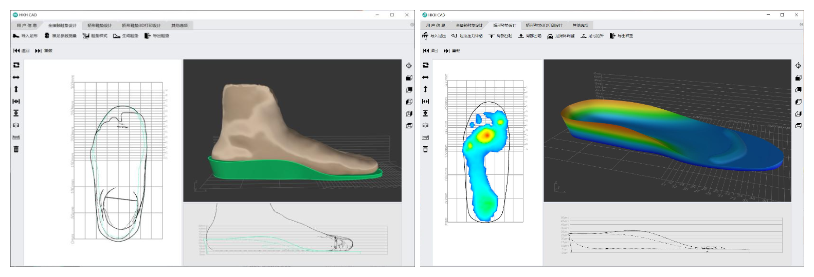 矯形鞋墊快速設(shè)計(jì)軟件可基于人體足部三維模型和動態(tài)足底壓力分布數(shù)據(jù),實(shí)現(xiàn)個(gè)性化全接觸式鞋墊或局部微結(jié)構(gòu)填充鞋墊的快速一體化設(shè)計(jì)。可應(yīng)用于包含糖尿病足、扁平足、拇外翻、內(nèi)外翻足、足跟痛、足底筋膜炎、高弓足等足部有矯治需求的特殊人群,以及日常生活中有個(gè)性化定制鞋墊需求的普通人群。