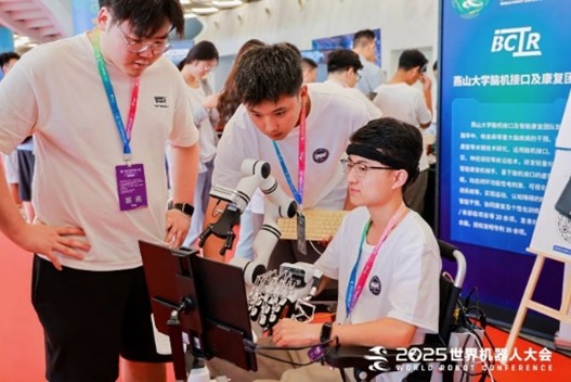 研發(fā)的集成可穿戴機械手、輕量化機械臂、智能輪椅于一體的腦肢協(xié)同智能康復與自理系統(tǒng),能夠根據用戶意圖對多個被控對象進行協(xié)同操作,實現腦控移動、手功能康復、多肢協(xié)同操作等功能,具有應用場景多樣、康復與協(xié)作并重的優(yōu)勢,為運動障礙人士提供智能化運動新方案。