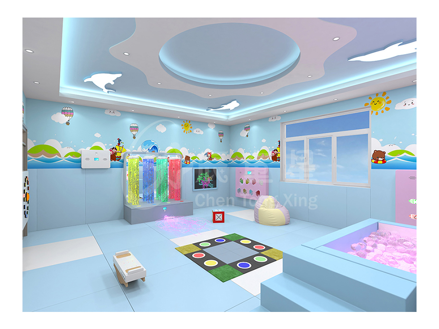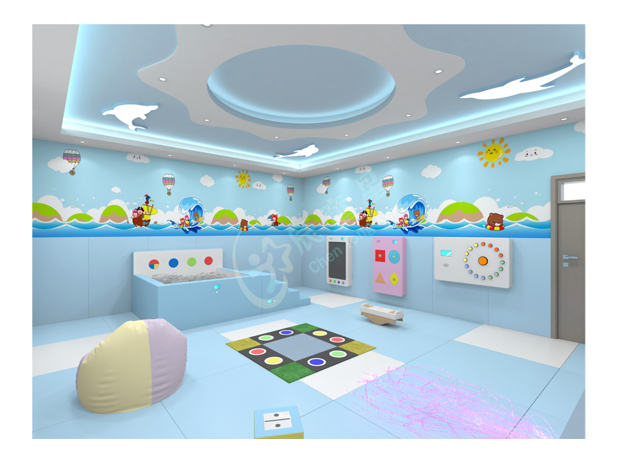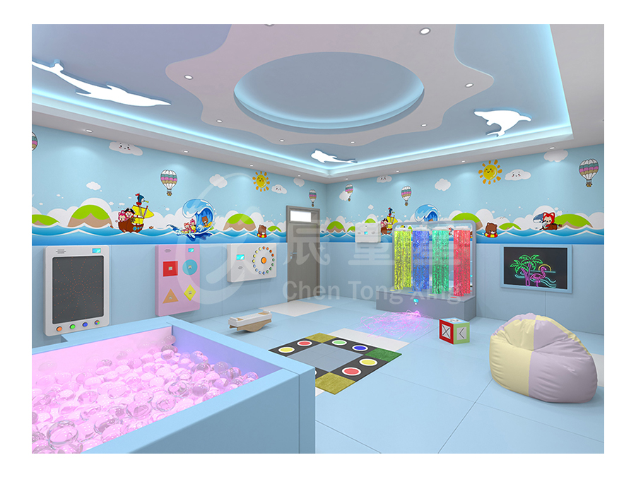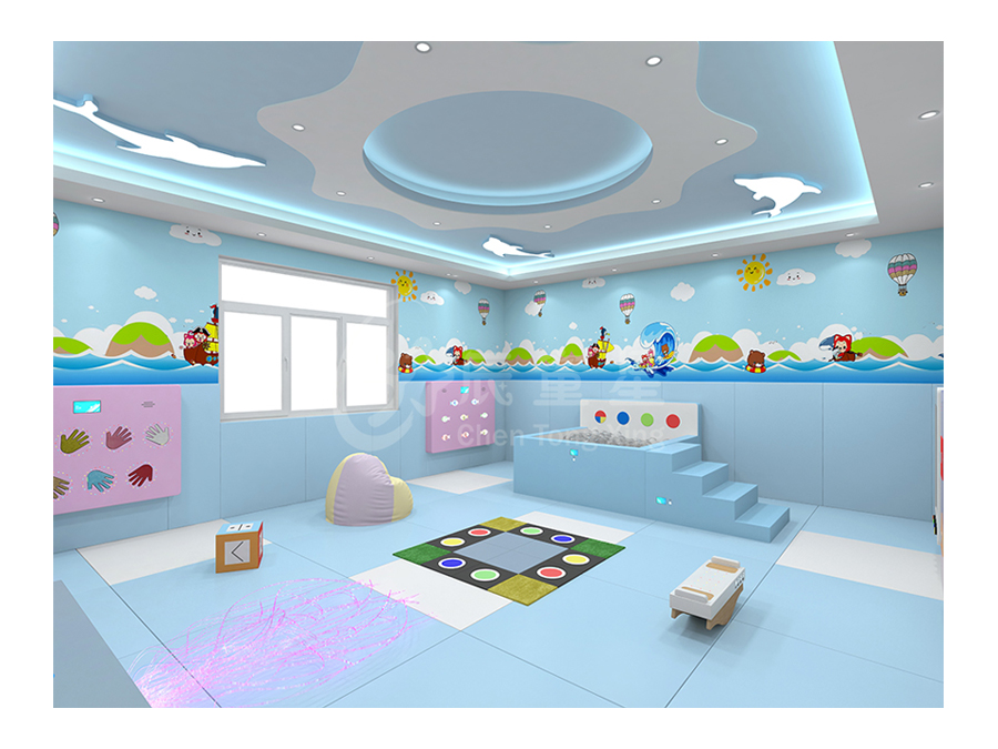 多感官訓(xùn)練室源于“史露西倫”理論,并依據(jù)神經(jīng)生理學(xué)及“蒙臺(tái)梭利感官教育”理論,強(qiáng)調(diào)給予有感官障礙和學(xué)習(xí)困難者一個(gè)悠閑、舒適、安全的空間環(huán)境,并為他們安排一個(gè)充滿感官刺激的環(huán)境,通過控制簡單的器材,使環(huán)境產(chǎn)生多種變化,并于活動(dòng)中得到感官刺激經(jīng)驗(yàn)。在訓(xùn)練過程中調(diào)動(dòng)身體各個(gè)器官,全方位的激發(fā)興趣,全身心地為兒童服務(wù)。