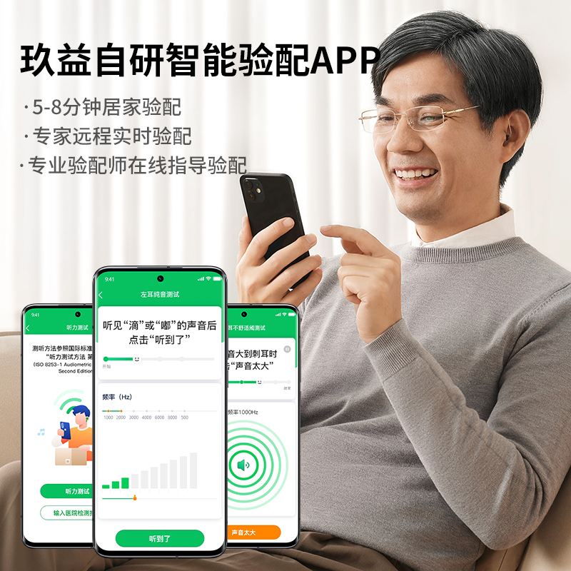 玖益醫(yī)療級智能藍(lán)牙耳背式助聽器(RIC P3 中功率) 適合中度至重度聽損,采用玖益獨創(chuàng)“三芯系統(tǒng)技術(shù)”、55dB滿檔增益,115dB最大聲壓級 ,64通道WDRC及AI降噪技術(shù)、智能驗配APP及遠(yuǎn)程驗配、居家5-8分鐘可完成測聽和驗配,IP67防水,150小時長續(xù)航,暢享舒適溝通。