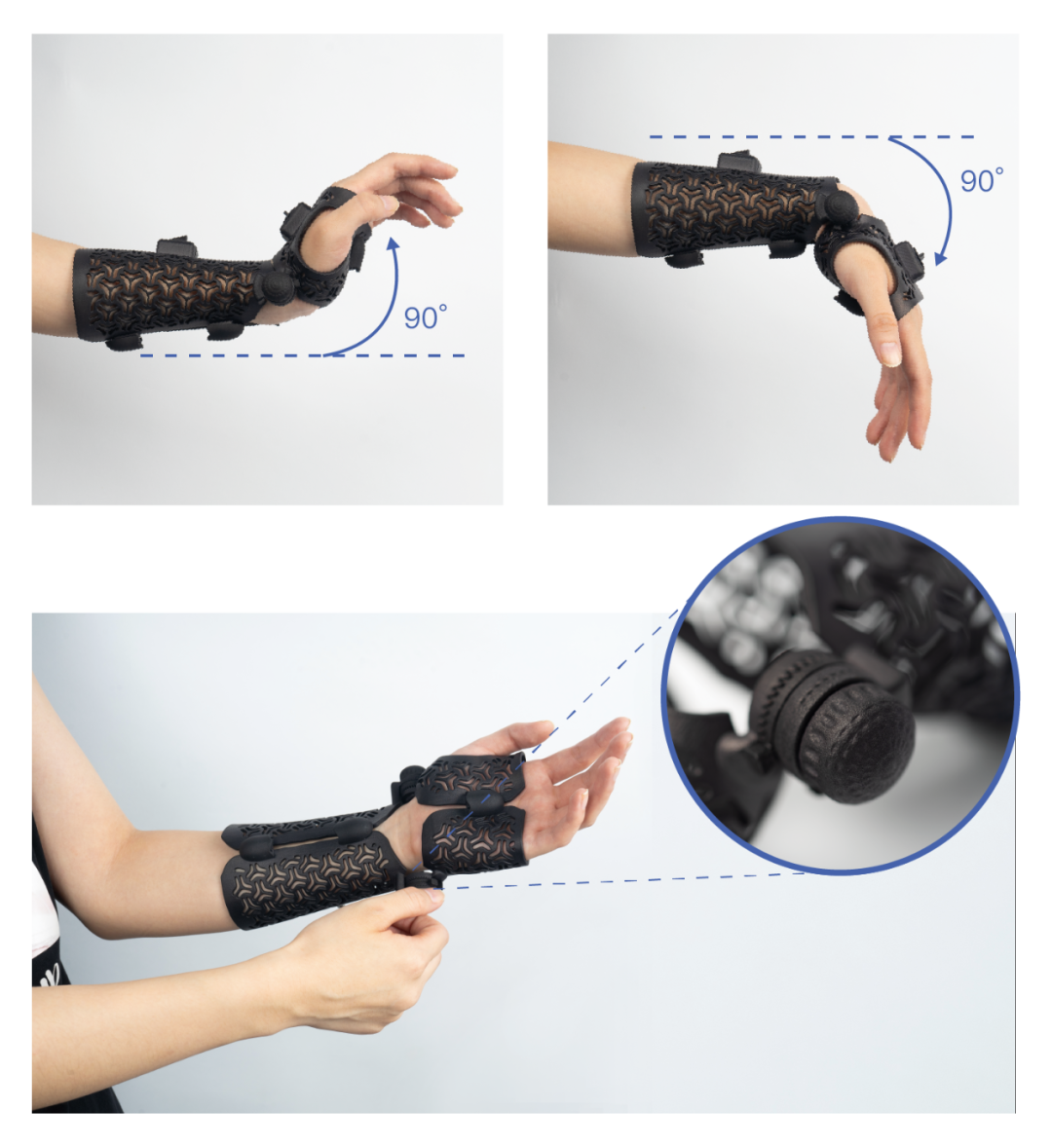 3D矯形器的動(dòng)態(tài)固定系統(tǒng)解決了傳統(tǒng)矯形器無法同時(shí)實(shí)現(xiàn)關(guān)節(jié)固定與動(dòng)態(tài)活動(dòng)的問題,不僅可以保證腕關(guān)節(jié)活動(dòng),還能給予治療康復(fù)全周期的關(guān)節(jié)支撐和保護(hù)的作用。