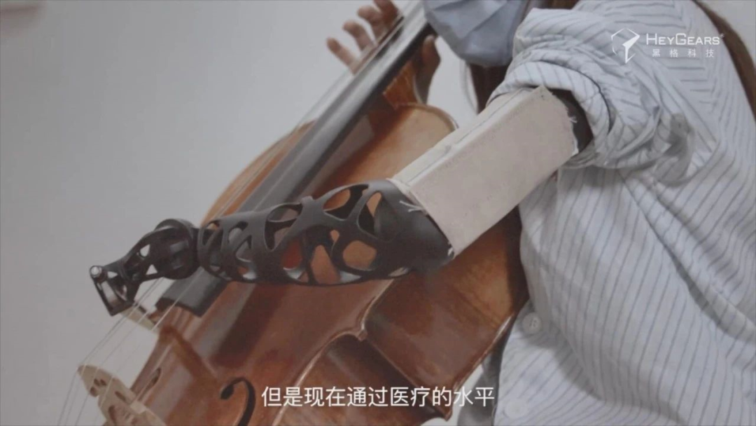 大提琴女孩因意外導(dǎo)致左臂截肢,遺憾放棄大提琴的演奏。黑格為她定制拉大提琴專用的3D打印功能性假肢后,使她能夠重新?lián)肀б魳返氖澜纭?/em>