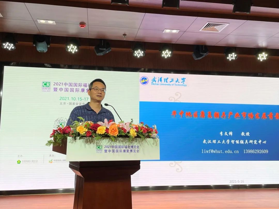 武漢理工大學智能輔具研發(fā)中心李文鋒教授作了《華中地區(qū)康復輔具產(chǎn)業(yè)市場發(fā)展前景》的主題分享,詳細介紹了華中地區(qū)輔具需求、政策環(huán)境、康復輔具發(fā)展優(yōu)勢以及政產(chǎn)學研資用等方面內(nèi)容。