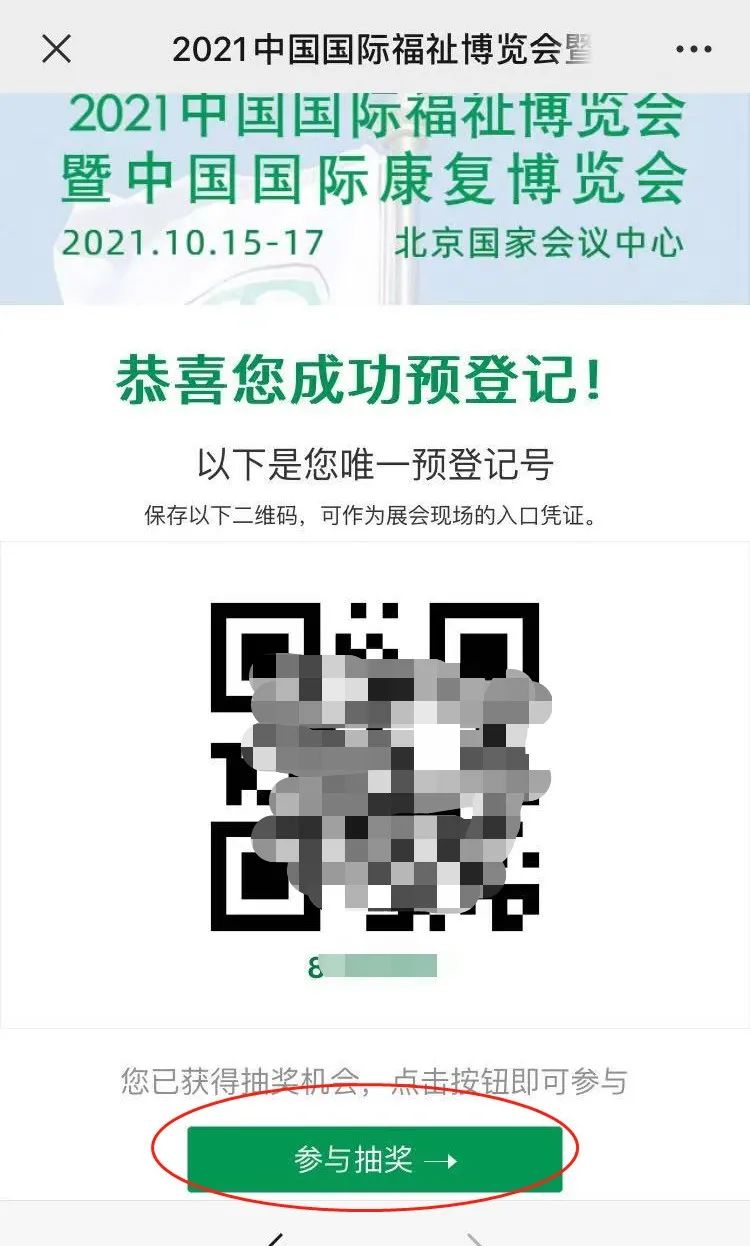 Step 1:識(shí)別下方二維碼,填寫(xiě)參觀登記信息,完成預(yù)登記,并截圖您的個(gè)人預(yù)登記二維碼。(或關(guān)注微信公眾號(hào)“中國(guó)國(guó)際福祉博覽會(huì)”,點(diǎn)擊菜單欄【我要參觀】)