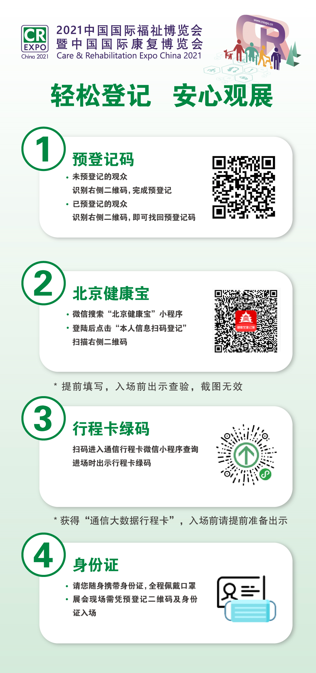 (3)所有進(jìn)場(chǎng)人員均須實(shí)名制登記,出示“北京健康寶+行程碼綠碼“方可進(jìn)入展館,出示“預(yù)登記成功二維碼+身份證” 換取胸卡,方可進(jìn)入展廳參觀。