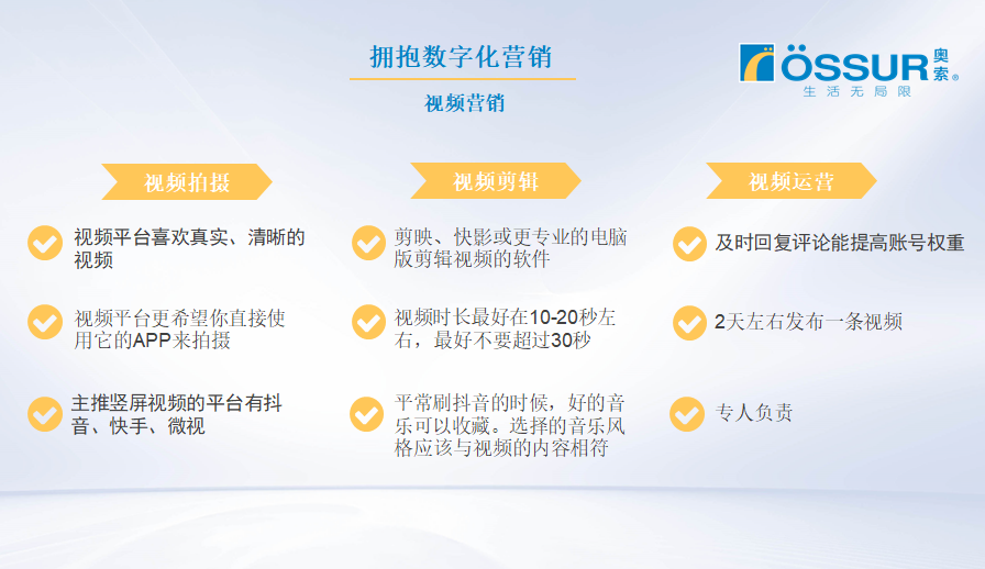 與傳統(tǒng)營銷相比,數(shù)字化營銷有營銷成本低、互動(dòng)性高、精準(zhǔn)化程度高的優(yōu)點(diǎn)。奧索通過短視頻平臺(tái)(抖音、快手)進(jìn)行數(shù)字化營銷,取得了不錯(cuò)的成果。