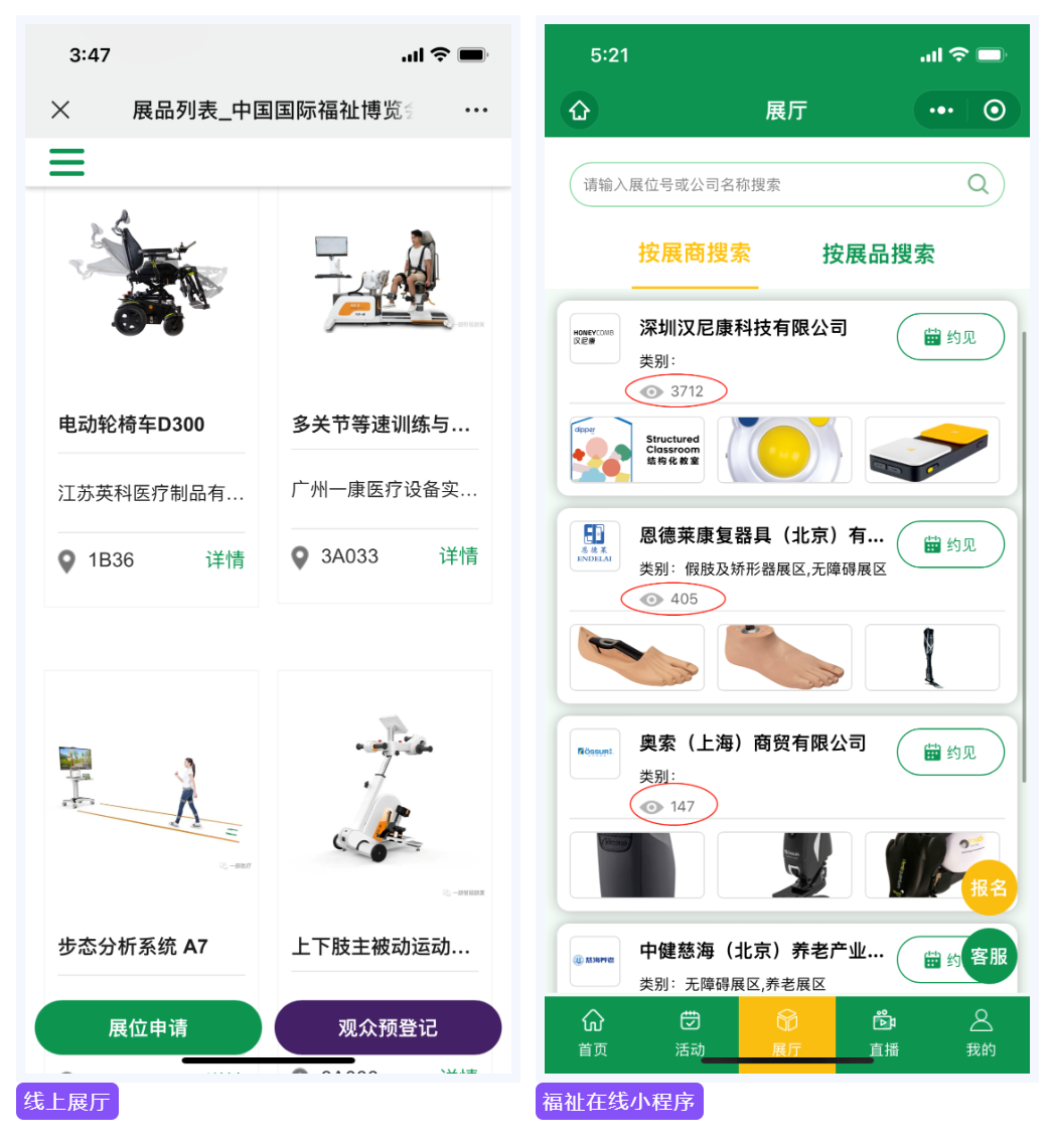官方線上展廳及“福祉在線”小程序年訪問量高達(dá)50萬+,全面呈現(xiàn)嚴(yán)選福祉、康復(fù)行業(yè)好產(chǎn)品、新技術(shù), 幫助展商企業(yè)從行業(yè)中脫穎而出。