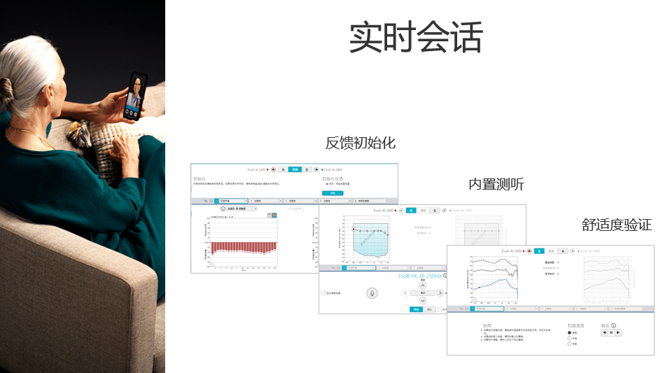 分享會上李伯陽指出目前我國聽力現(xiàn)狀的痛點(diǎn)和現(xiàn)狀,并基于此提出了“自調(diào)節(jié)+遠(yuǎn)程配驗(yàn)”技術(shù)的機(jī)遇和挑戰(zhàn)。同時也為我們分享了臨床案例分析,從而證實(shí)了該技術(shù)的可行性與優(yōu)勢,使聽力受損患者能夠足不出戶便能與調(diào)配師全程溝通,讓聆聽變得更具智慧。