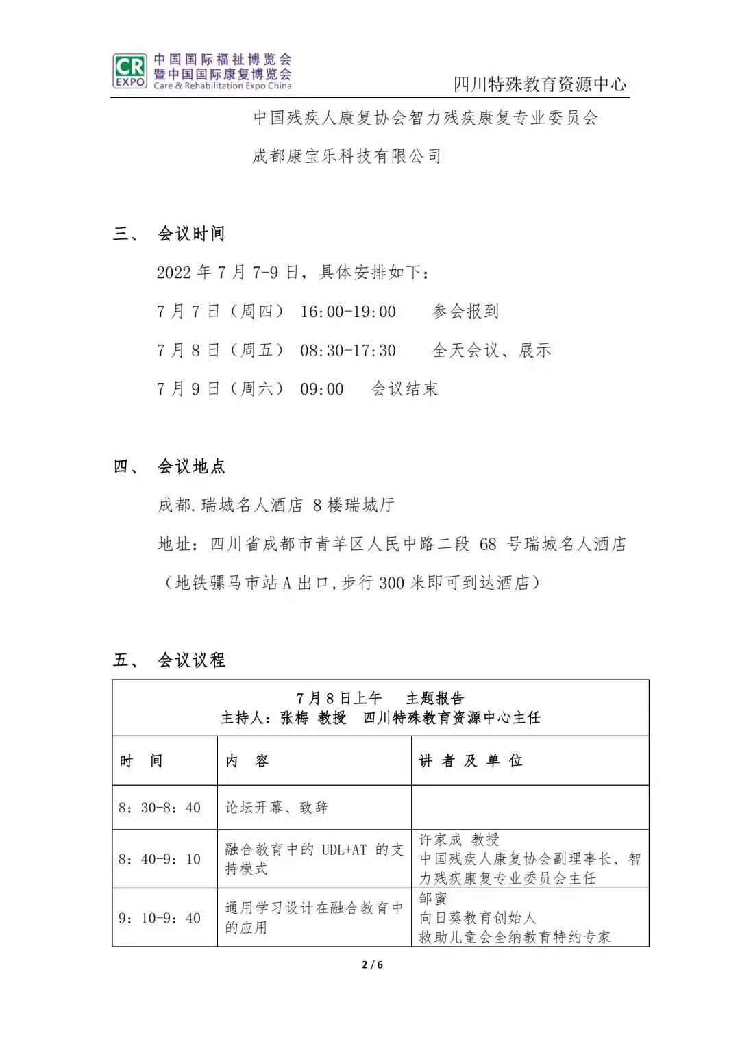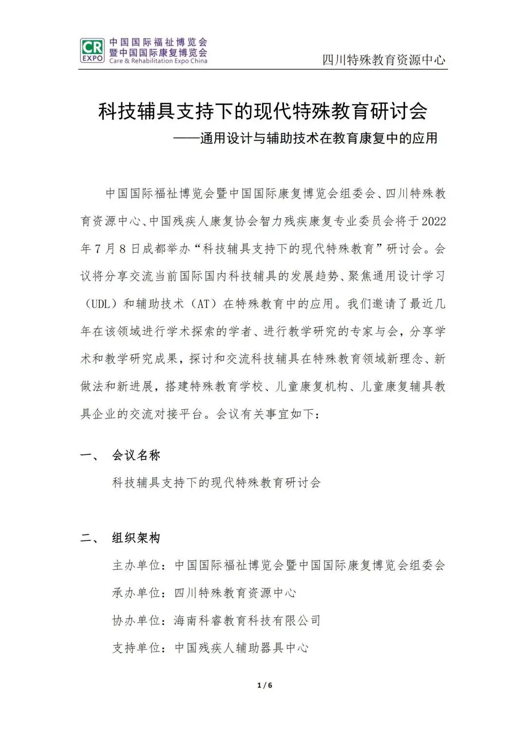 基于此,中國(guó)國(guó)際福祉博覽會(huì)暨中國(guó)國(guó)際康復(fù)博覽會(huì)組委會(huì)聯(lián)合四川特殊教育資源中心、中國(guó)殘疾人康復(fù)協(xié)會(huì)智力殘疾康復(fù)專業(yè)委員會(huì),將于2022年7月8日在成都舉辦“科技輔具支持下的現(xiàn)代特殊教育”研討會(huì),邀請(qǐng)專家學(xué)者分享學(xué)術(shù)和教學(xué)研究成果,探討和交流科技輔具在特殊教育領(lǐng)域新理念、新做法和新進(jìn)展,搭建特殊教育學(xué)校、兒童康復(fù)機(jī)構(gòu)、兒童康復(fù)輔具教具企業(yè)的交流對(duì)接平臺(tái)。會(huì)議詳情如下: