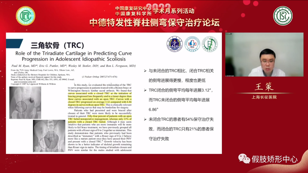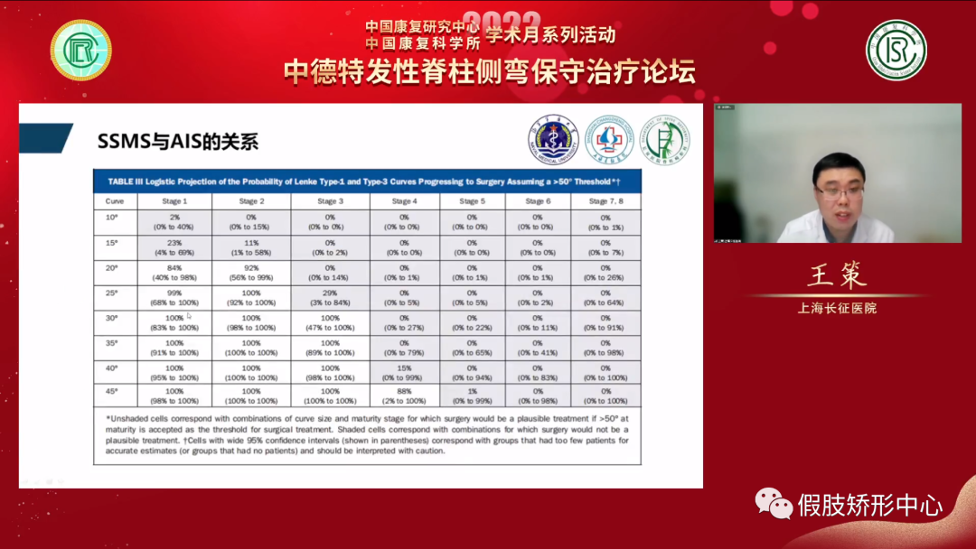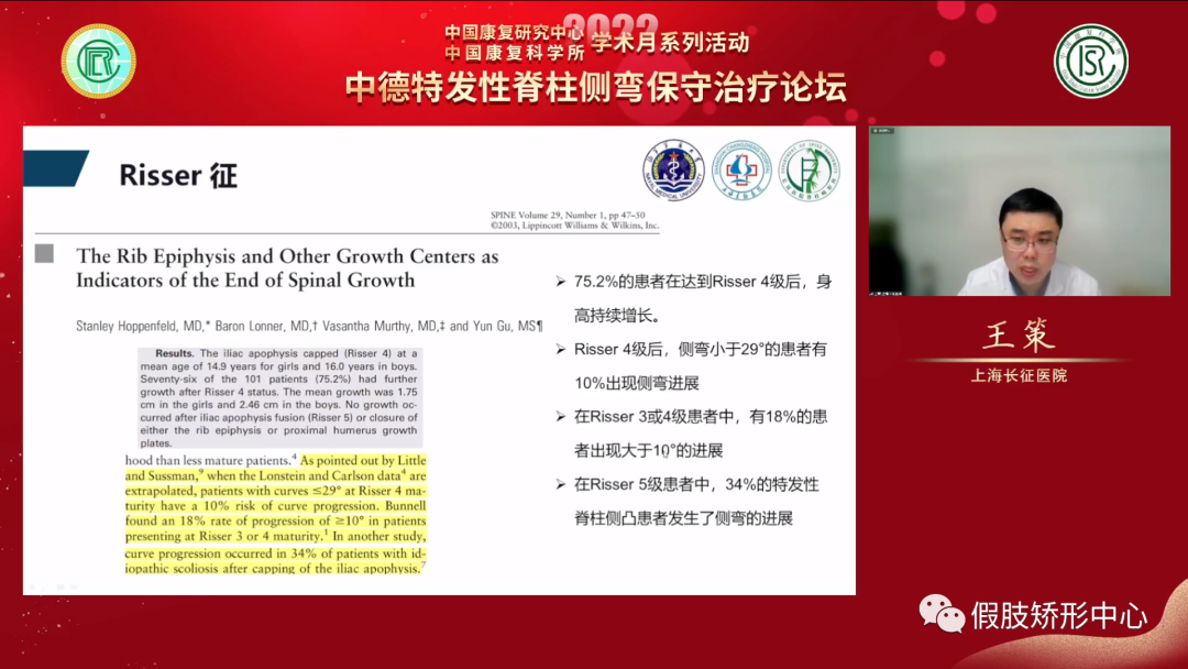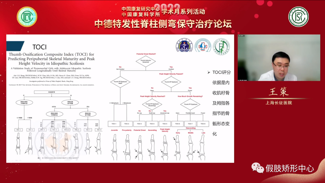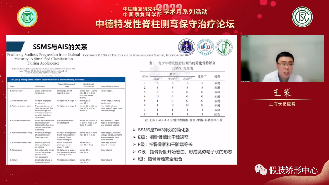 王策教授講述了對(duì)脊柱側(cè)彎患者骨骼成熟度不同的評(píng)估方法,以及判斷生長(zhǎng)發(fā)育程度對(duì)青少年特發(fā)性脊柱側(cè)彎的治療影響。