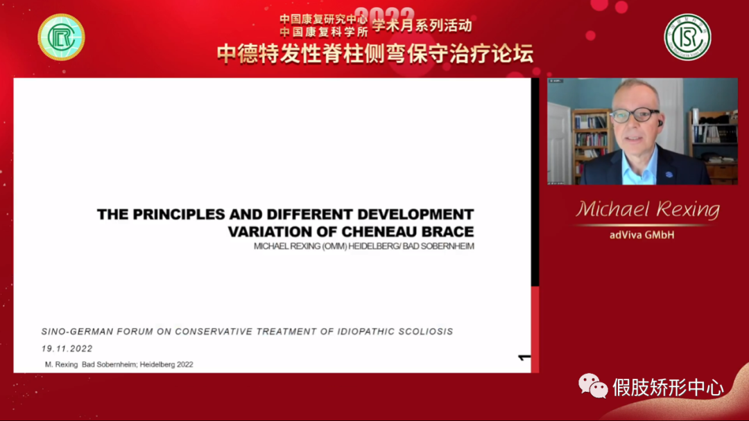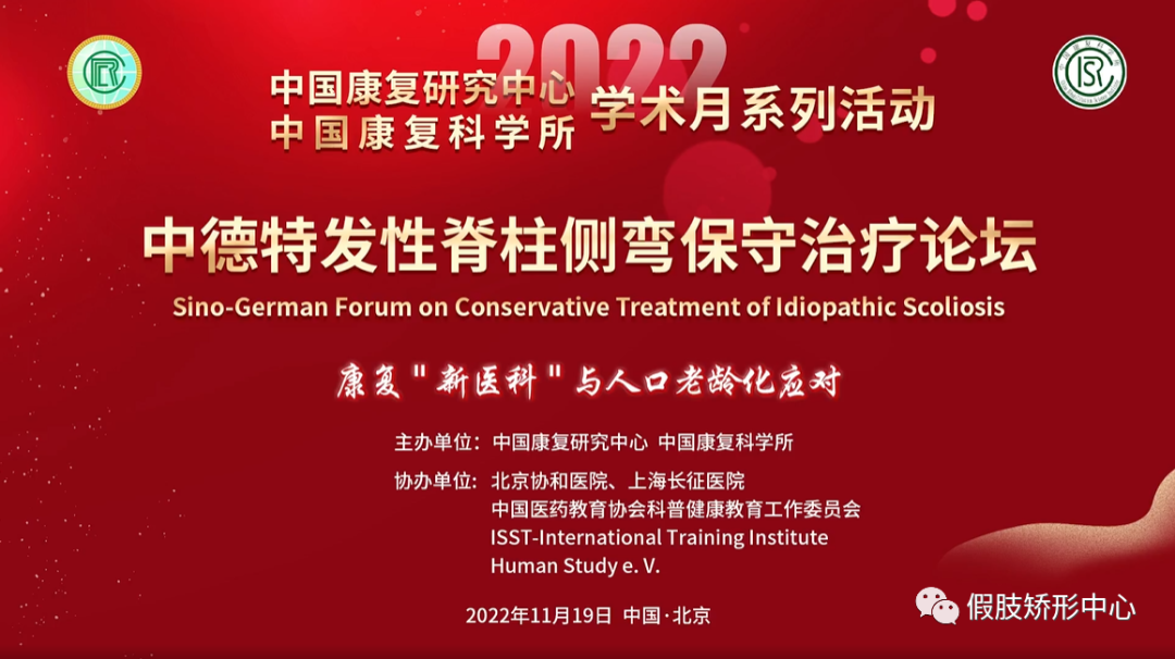 2022年11月19日下午,中國(guó)康復(fù)研究中心假肢矯形部聯(lián)合德國(guó)以及國(guó)內(nèi)相關(guān)頂尖特發(fā)性脊柱側(cè)彎治療機(jī)構(gòu)共同成功舉辦了"中德特發(fā)性脊柱側(cè)彎保守治療論壇"。
