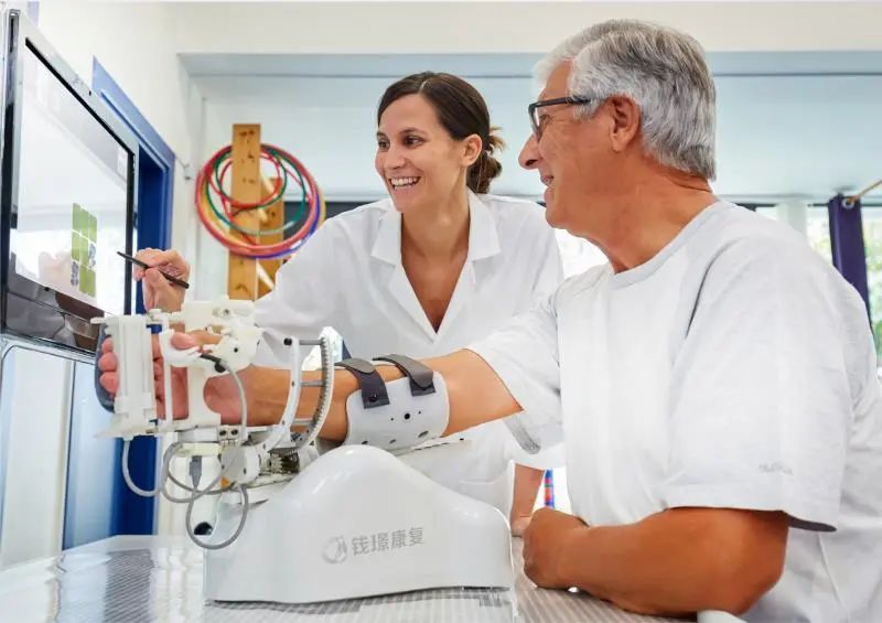 智能上肢機器人采用計算機技術實時模擬人體上肢運動規(guī)律,擁有一個可調節(jié)的上臂支持系統(tǒng),增加的智能反饋和三維運動空間,可使功能治療訓練在一個虛擬的環(huán)境中進行。游戲式的訓練提高了患者的興趣,促進康復進程。本設備可使上肢在負重或者減重的狀態(tài)下進行訓練,并提供高質量的反饋信息,跟蹤患者訓練后的康復程度 ,是上肢恢復的好幫手。