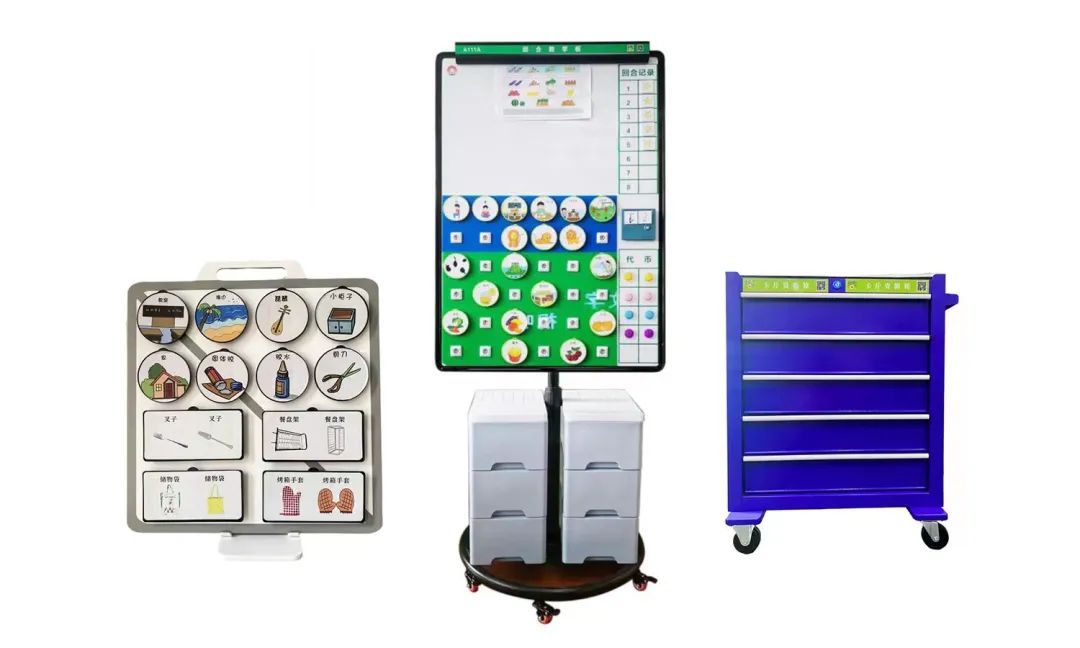 應(yīng)用場(chǎng)所:康復(fù)中心、干預(yù)中心、語訓(xùn)中心、介入工作室、培智學(xué)校。本產(chǎn)品在結(jié)構(gòu)化工作原理的基礎(chǔ)上,采用視覺支持,使用產(chǎn)品結(jié)構(gòu)的模塊化組合方式以及具有獨(dú)創(chuàng)的磁吸交流圖卡,方便更換進(jìn)行結(jié)構(gòu)化教學(xué),一通過教授孩子新知識(shí)、新技能和新行為,讓他們適應(yīng)環(huán)境,適應(yīng)社會(huì),二是通過對(duì)環(huán)境的改變和對(duì)活動(dòng)流程的構(gòu)建等輔助手段,提高他們對(duì)環(huán)境的理解和適應(yīng)能力。